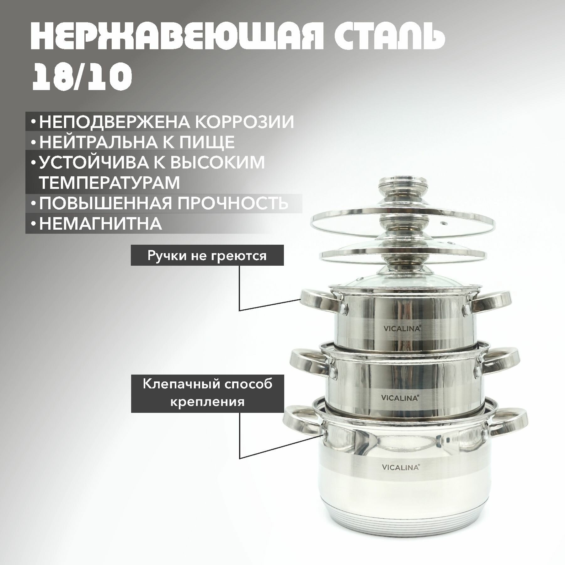 Набор кастрюль из нержавеющей стали Vicalina. интересное: