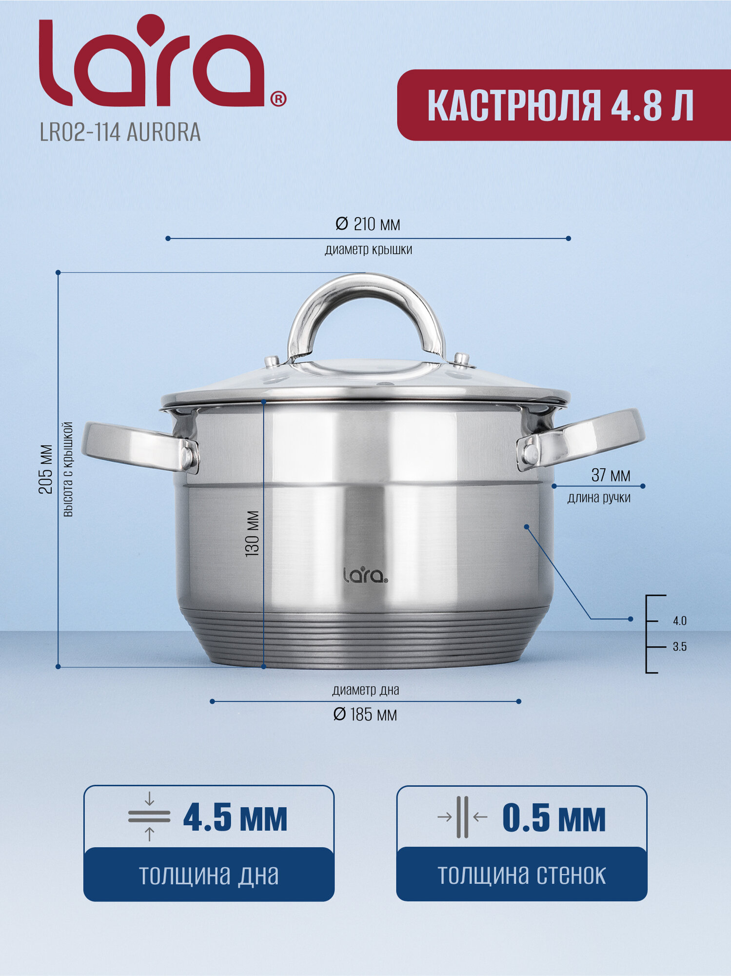 Набор кастрюль из нержавеющей стали LARA LR02-114 - серия AURORA, 2.8 л + 4.8 л, для всех видов плит, 2 предмета интересное: