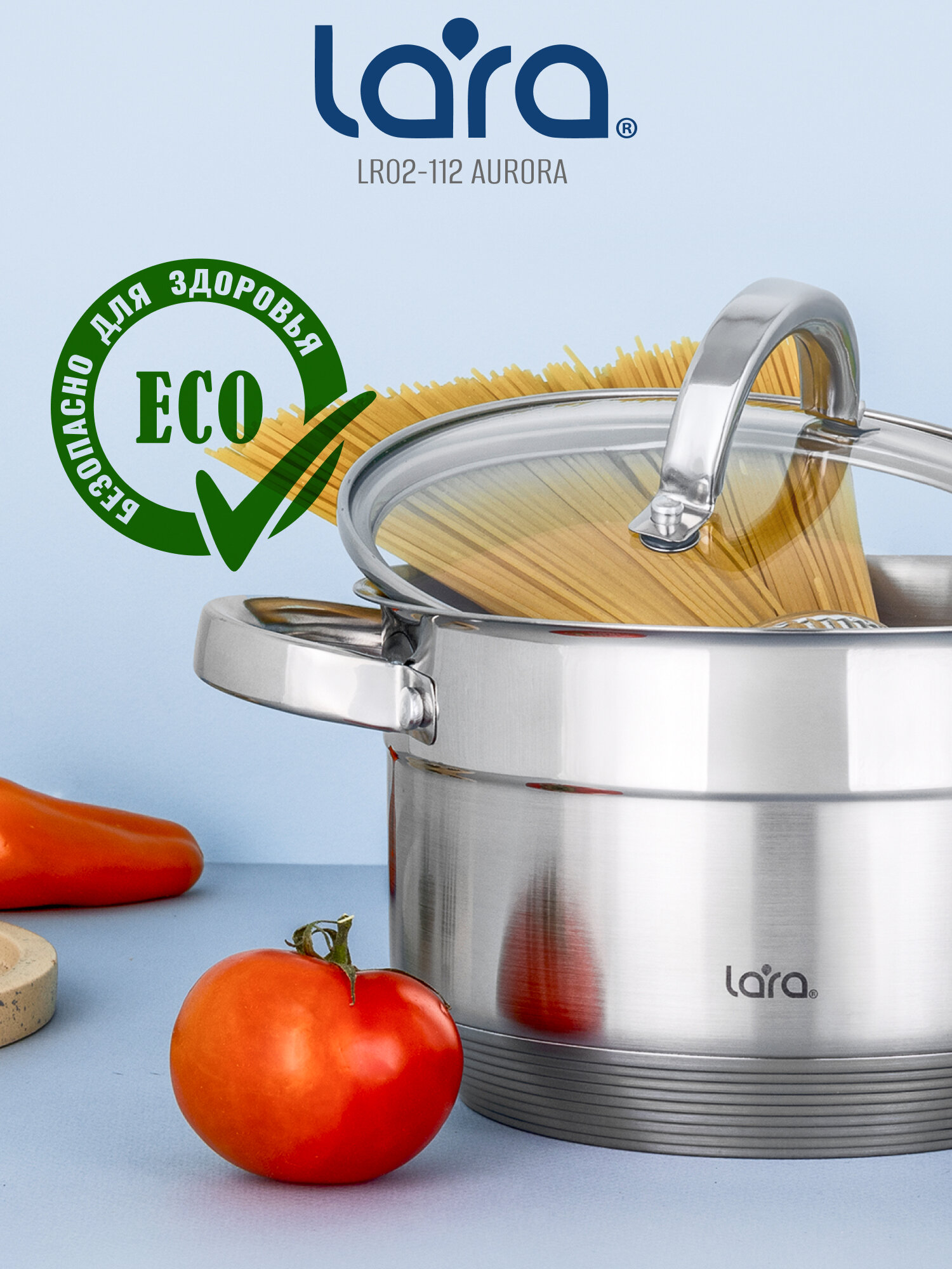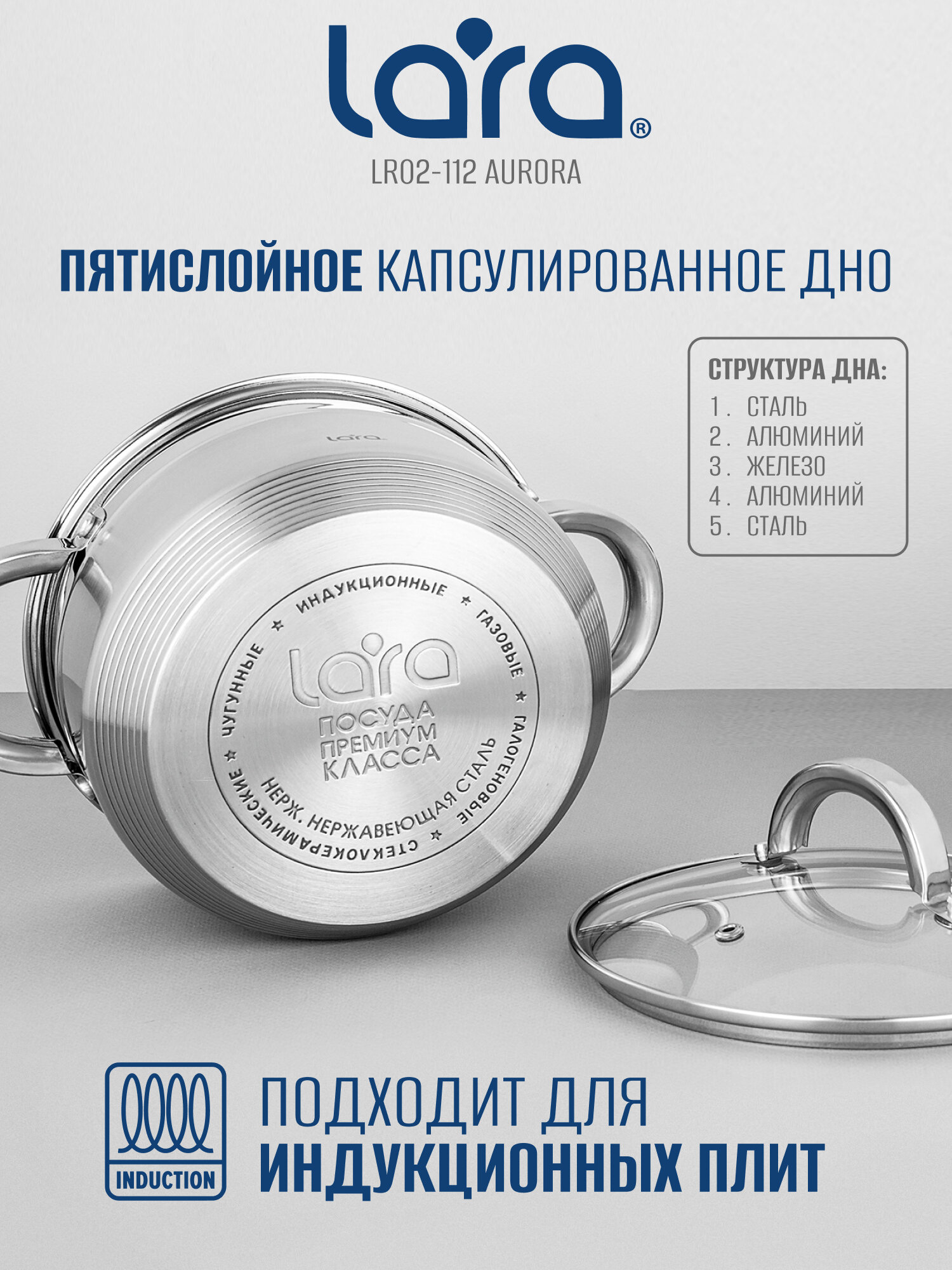 Купить Набор кастрюль для всех видов плит LARA LR02-112 AURORA/ 2 л + 3.8 л + 6.3 л/ нержавеющая сталь / 3 предмета