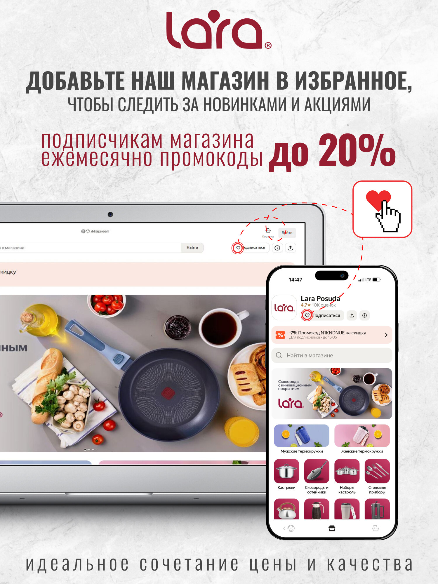 Набор кастрюль для всех видов плит LARA LR02-112 AURORA/ 2 л + 3.8 л + 6.3 л/ нержавеющая сталь / 3 предмета интересное: