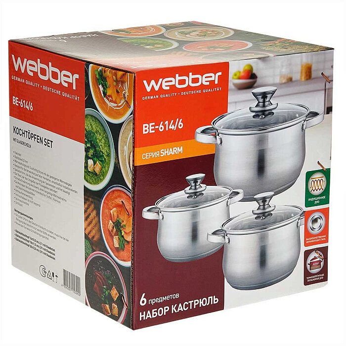 Набор кастрюль Webber BE-614/6 из нержавеющей стали со стеклянными крышками, 6 предметов интересное: