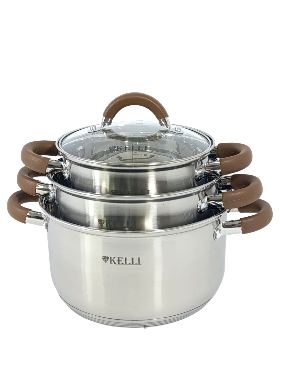 Набор посуды Kelli KL-4236 6 пр, нержавеющая сталь, 1,9л 2,6л 3,6л ручки силикон коричневый интересное: