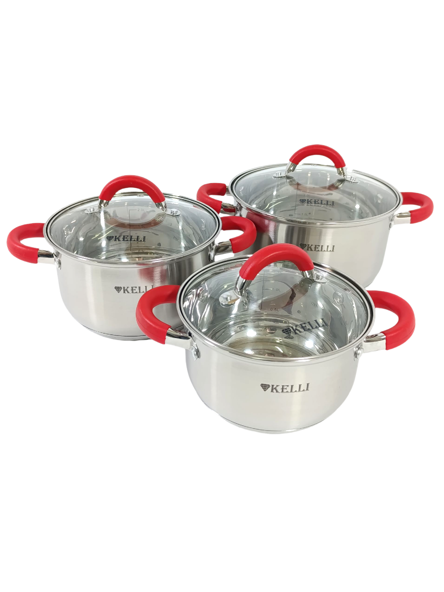 Набор посуды Kelli KL-4236 6 пр, нержавеющая сталь, 1,9л 2,6л 3,6л ручки силикон красный интересное:
