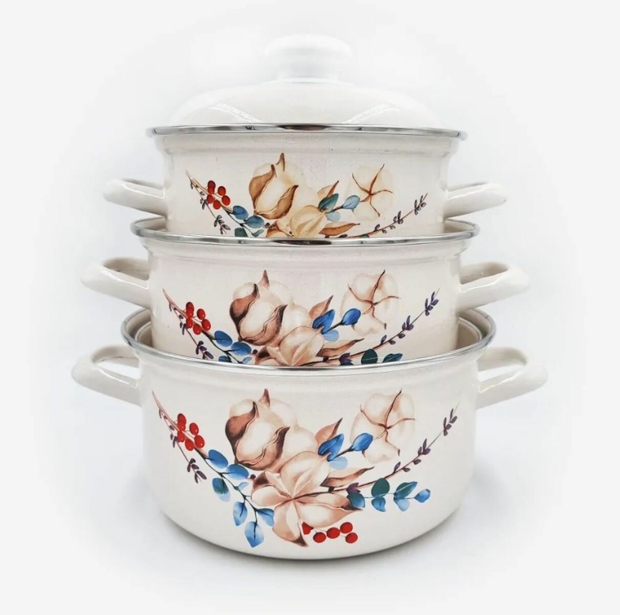 Набор эмалированных кастрюль 1,45л,2,9л,4,3л Анютины глазки Лысьвенские эмали