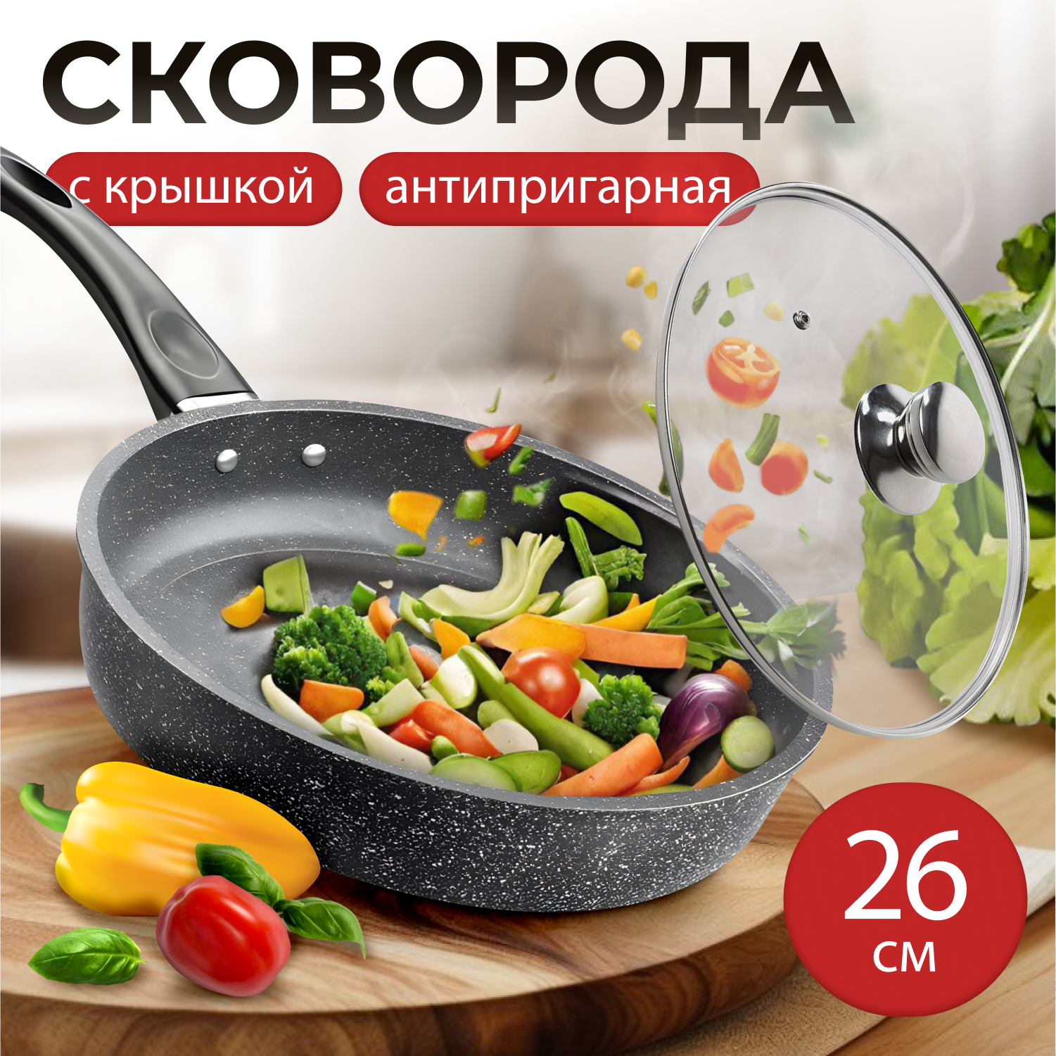 Сковорода антипригарная с крышкой MNV Home , 26 см, цвет черный интересное: