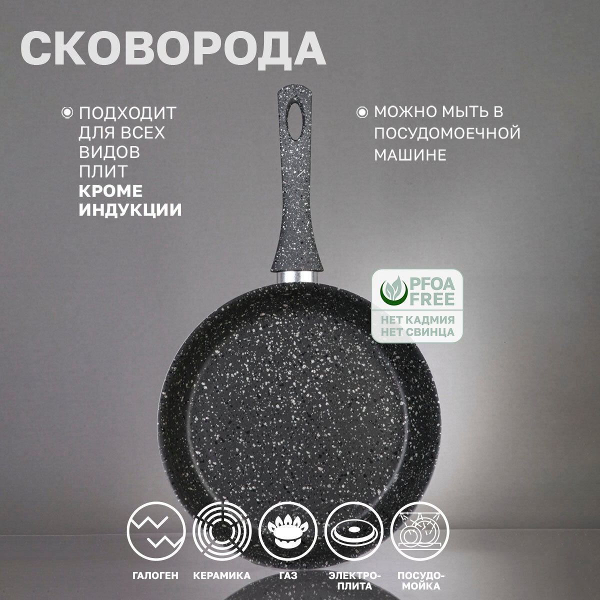 Сковорода 22 см с антипригарным покрытием "Гранит" для всех видов плит кроме индукции интересное: