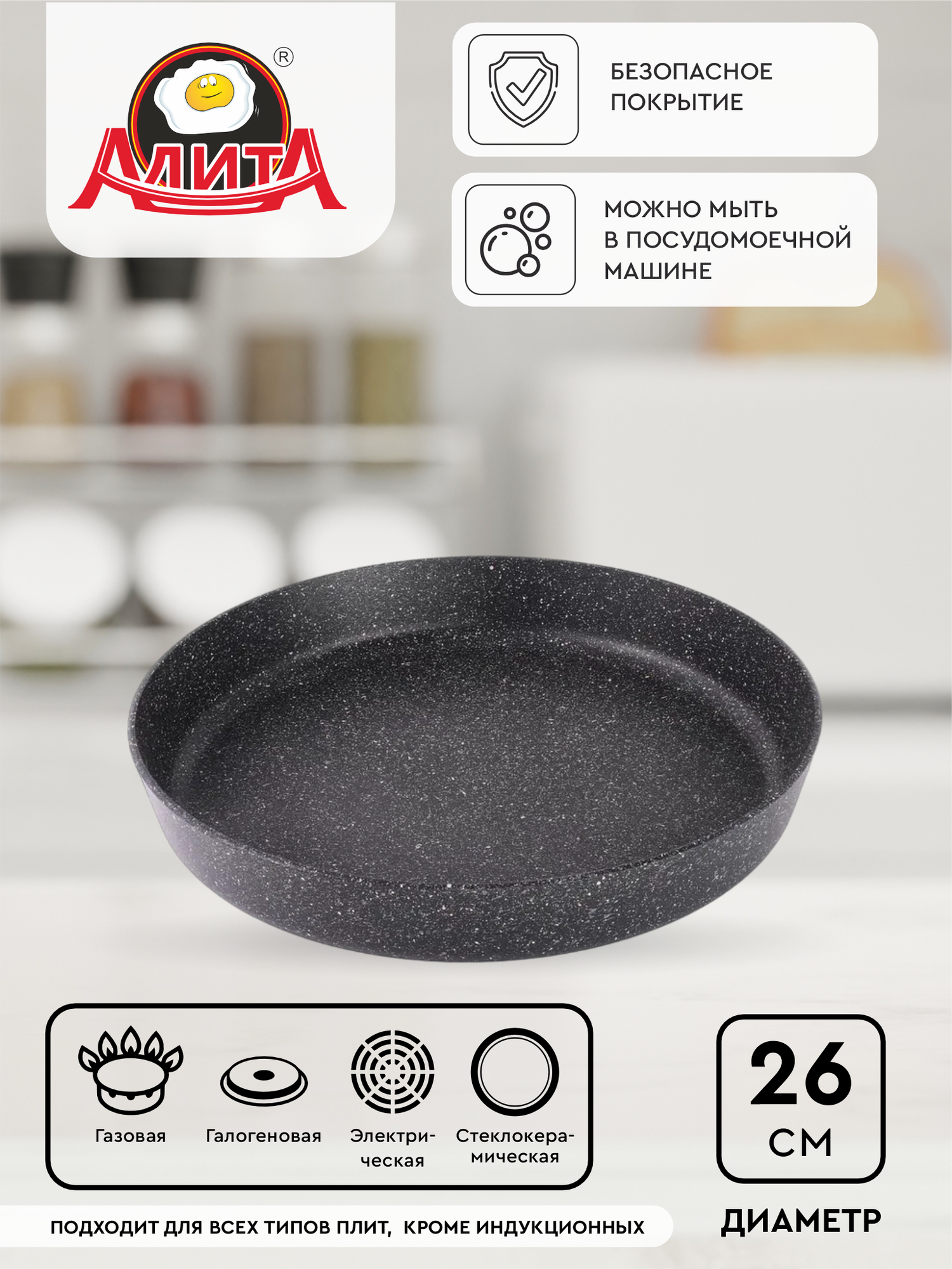 СохранитьСковорода для пиццы и пирогов без ручки 26 см с толстым дном, Природный камень интересное: