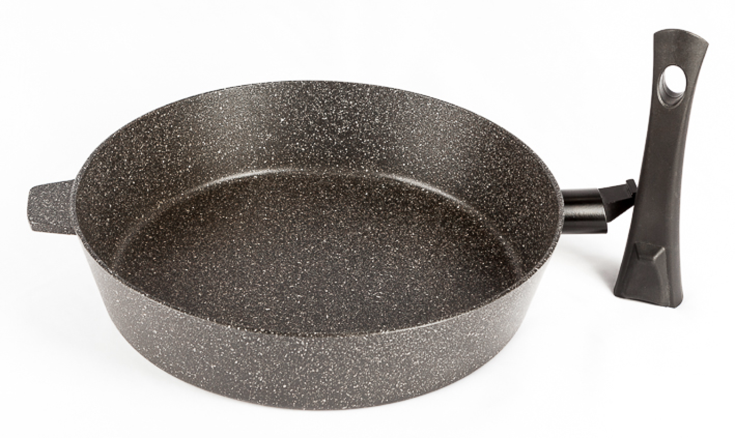 Сковорода антипригарная 28 см со съемной ручкой глубокая литая алюминиевая с покрытием, Природный камень