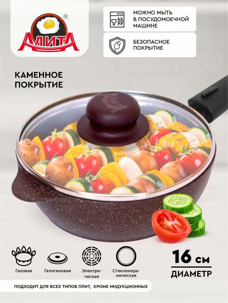 Сковорода с крышкой со съемной ручкой антипригарная маленькая 16 см, Браун интересное: