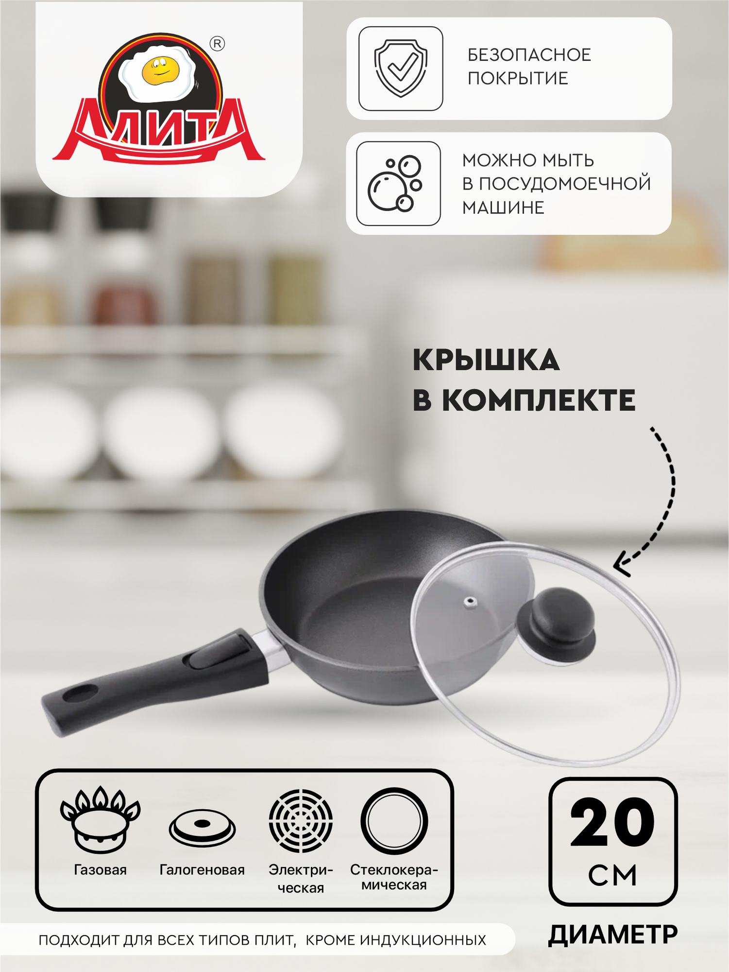 Сковорода с крышкой 20 см маленькая со съемной ручкой глубокая с толстым дном, Антрацит интересное: