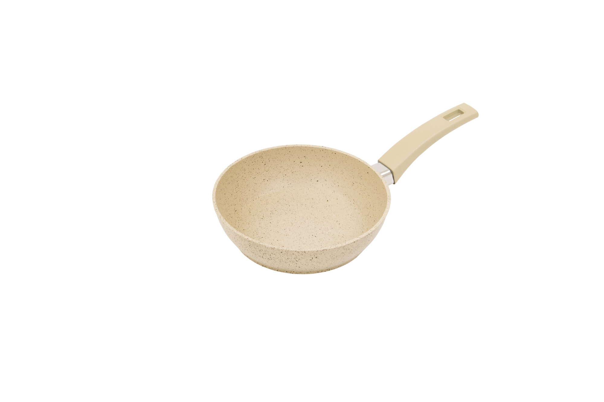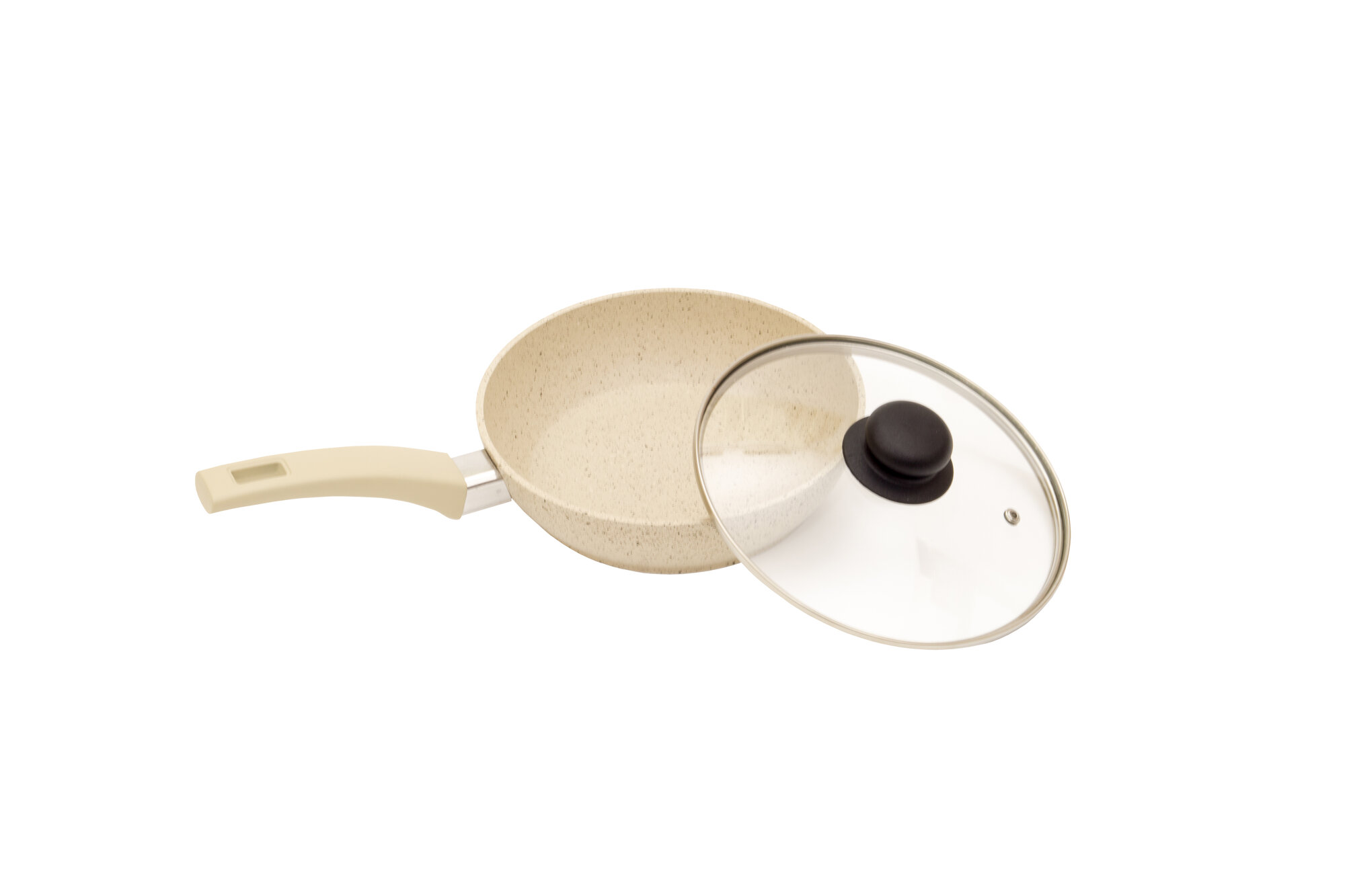 Сковорода с крышкой 20 см маленькая с толстым дном глубокая, Природный камень