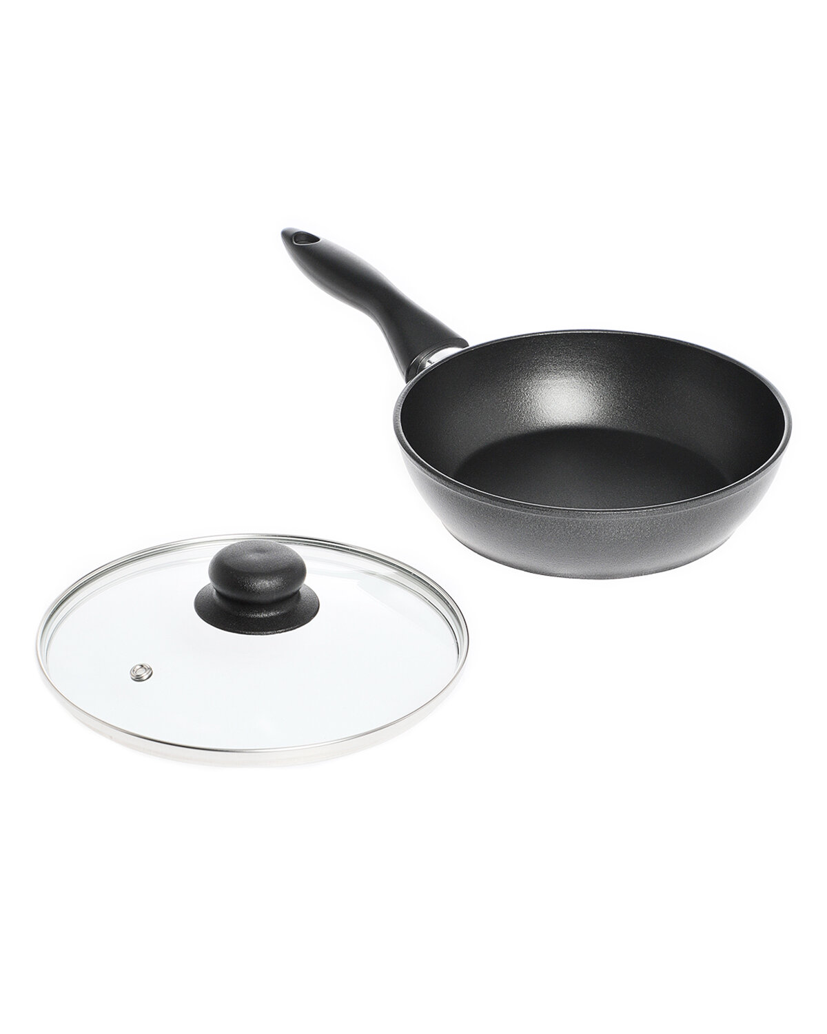 Купить Сковорода с крышкой 20 см маленькая с толстым дном глубокая, Антрацит