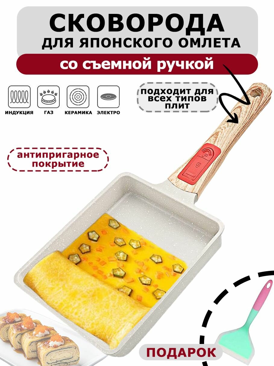 Сковорода (тамагояки) со съемной ручкой для омлета завтрака, блинов и оладий, 19 см интересное: