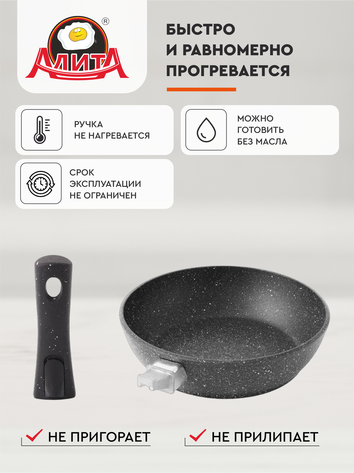 Сковорода со съемной ручкой 20 см с толстым дном глубокая маленькая, Природный камень интересное: