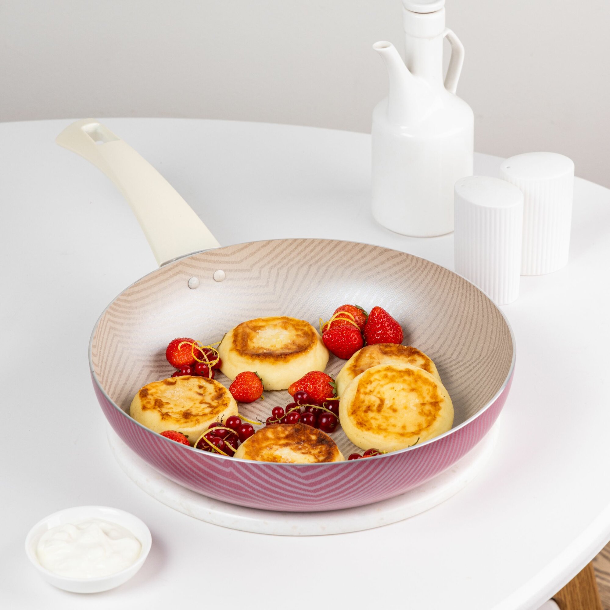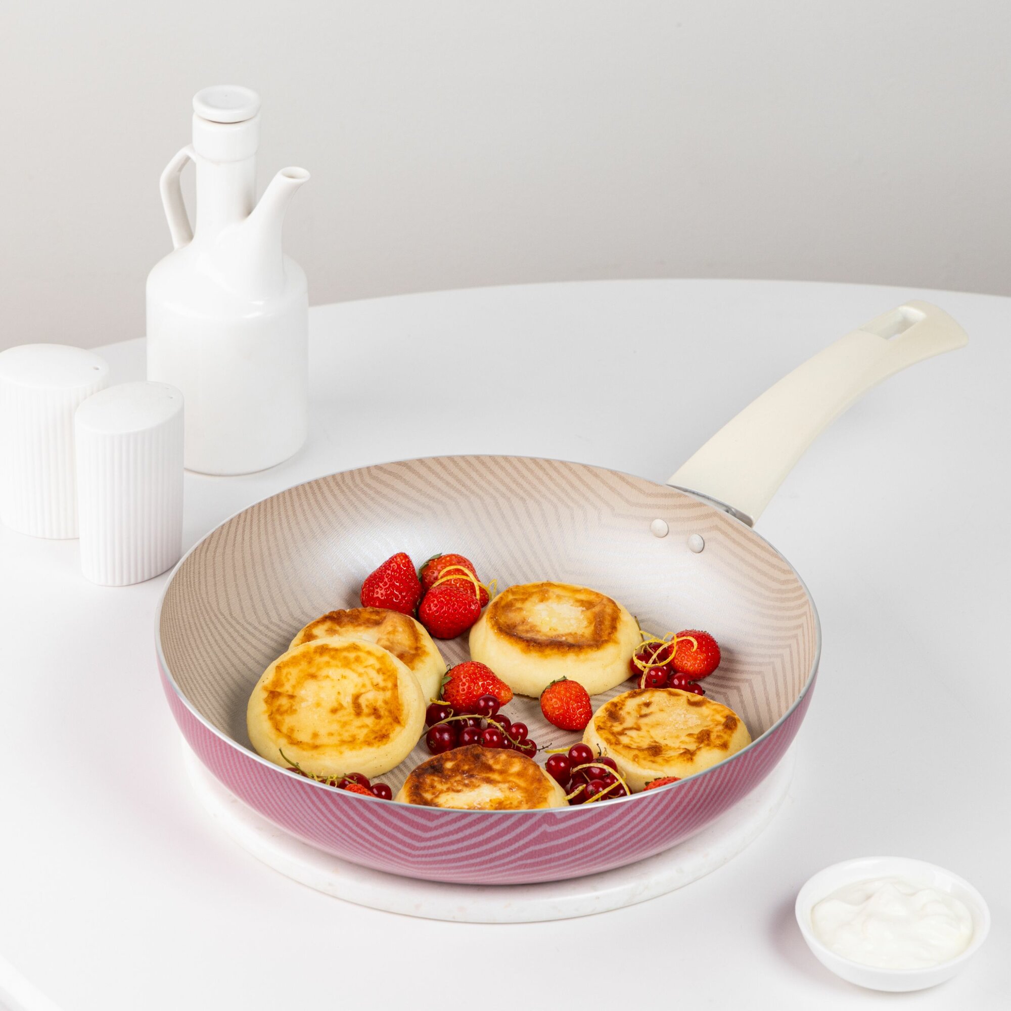 Сковорода 24 см без крышки с антипригарным покрытием, Розовая жемчужина