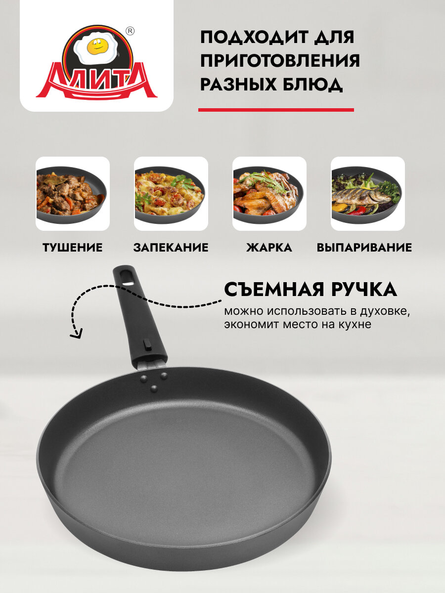 СохранитьСковорода для пиццы и пирогов съемная ручка 30 см с толстым дном большая, Антрацит интересное: