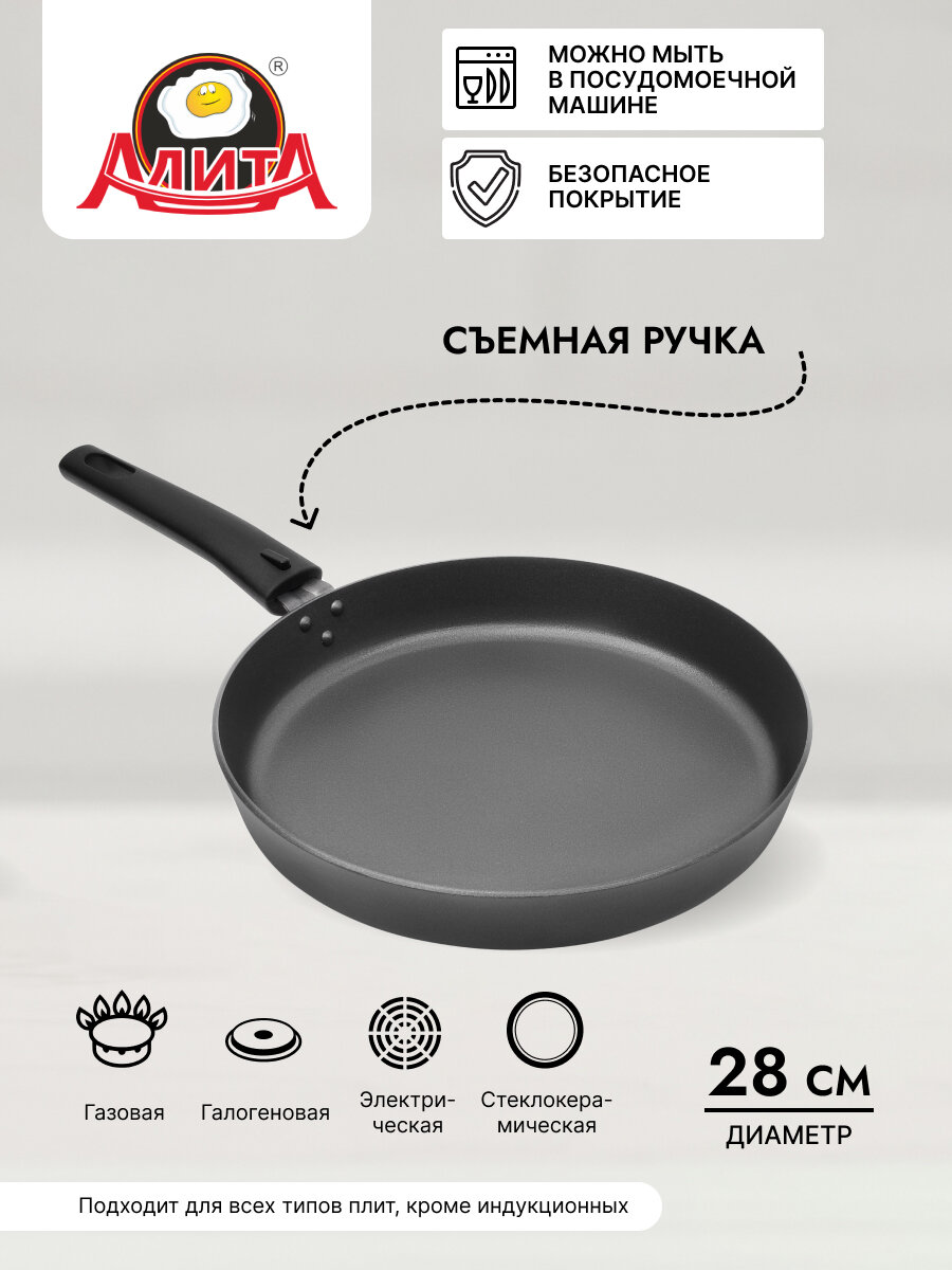 СохранитьСковорода для пиццы и пирогов со съемной ручкой 28 см с толстым дном большая, Антрацит интересное: