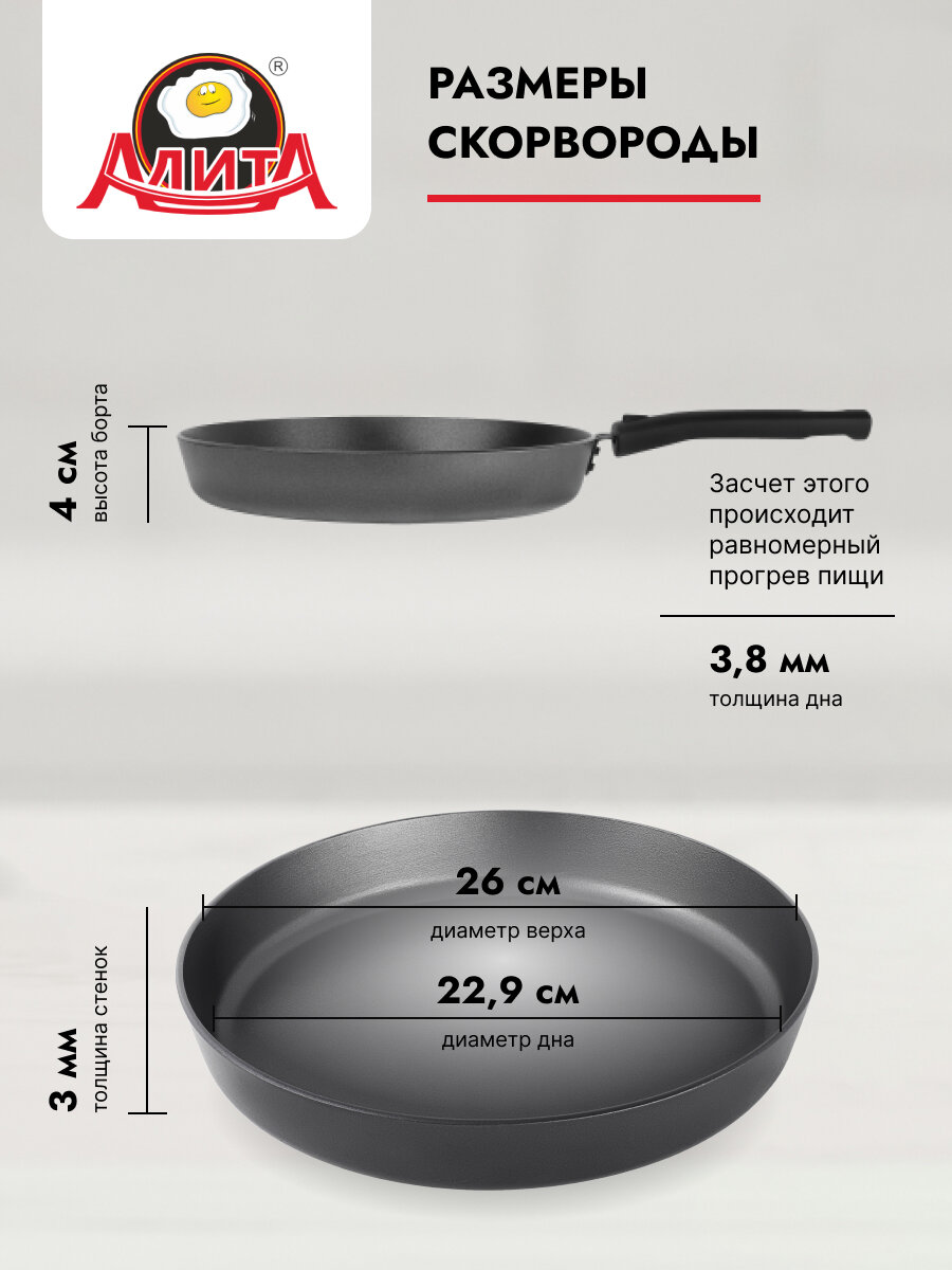 СохранитьСковорода для пиццы и пирогов со съемной ручкой 26 см большая с толстым дном, Антрацит интересное: