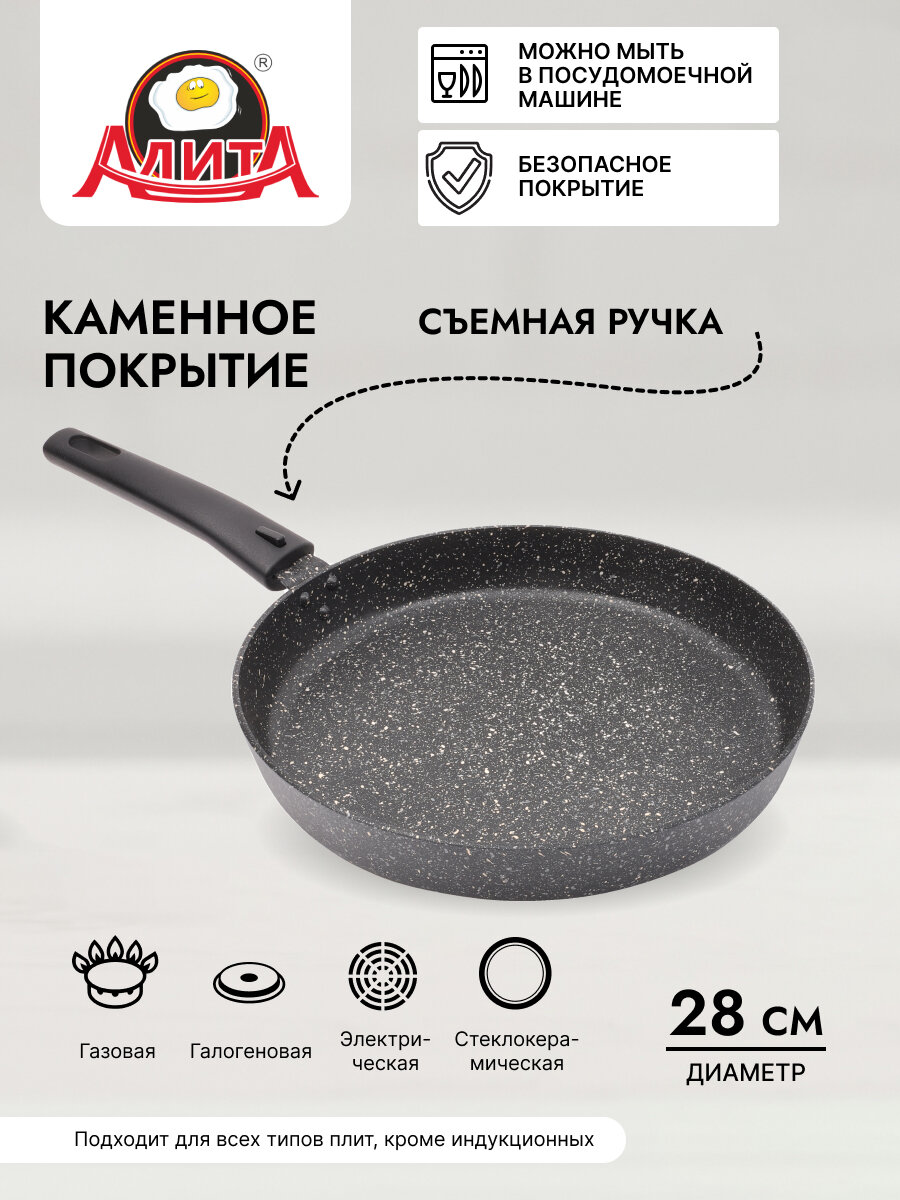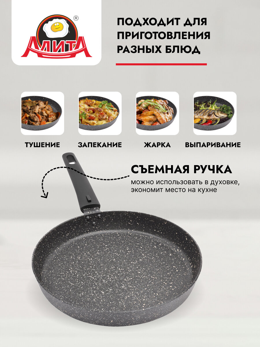 СохранитьСковорода для пиццы и пирогов со съемной ручкой 28 см с толстым дном большая, Природный камень интересное: