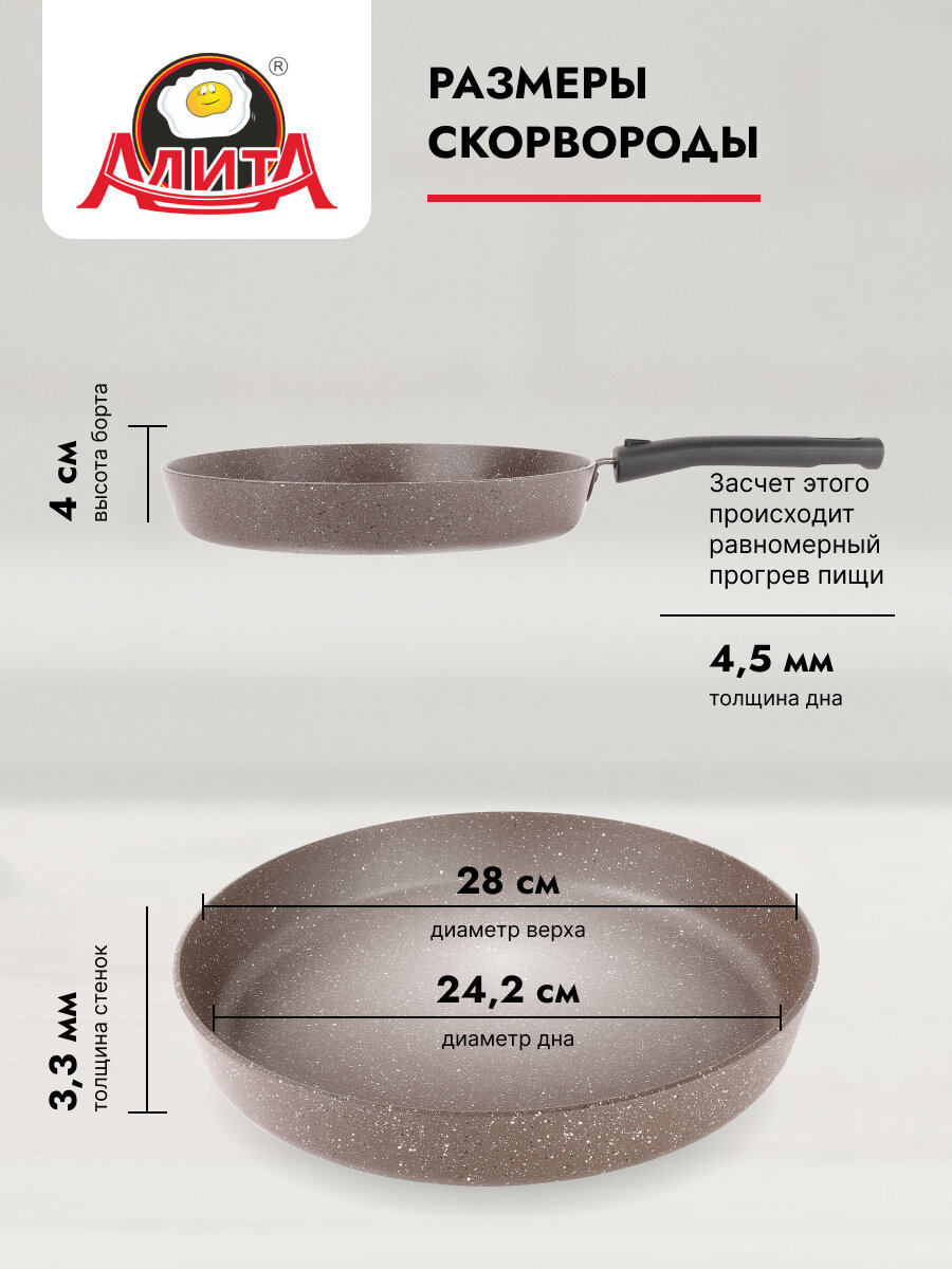 СохранитьСковорода для пиццы и пирогов со съемной ручкой 28 см с толстым дном большая, Браун интересное: