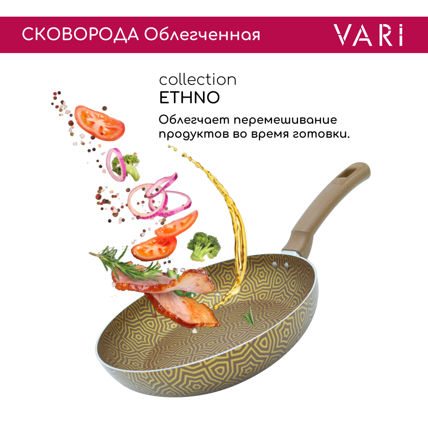Сковорода штампованная с антипригарным покрытием, ETHNO, 26 см