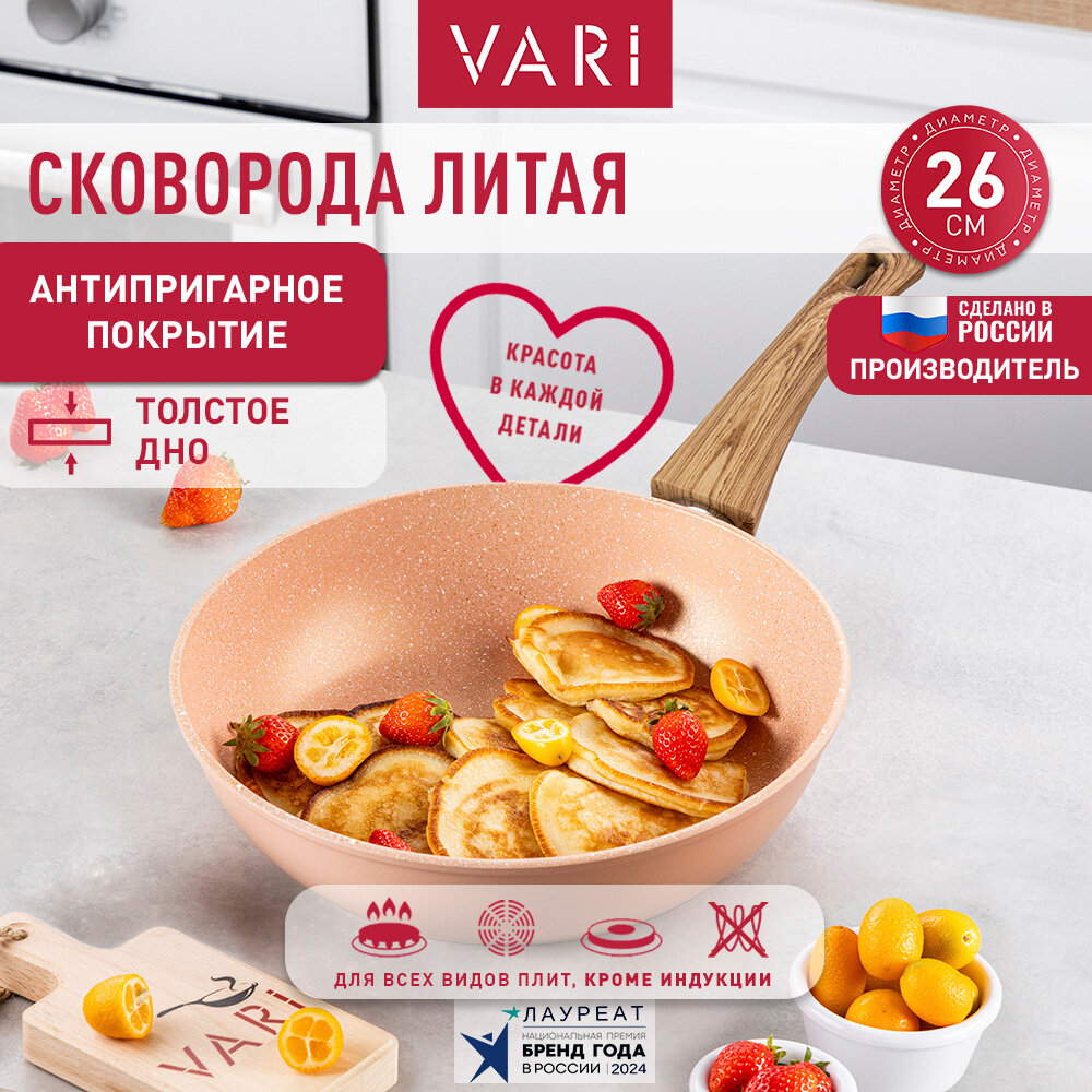 СохранитьСковорода литая 26см без крышки из безопасного пищевого алюминия с антипригарным покрытием и жаропрочной бакелитовой ручкой, аура интересное: