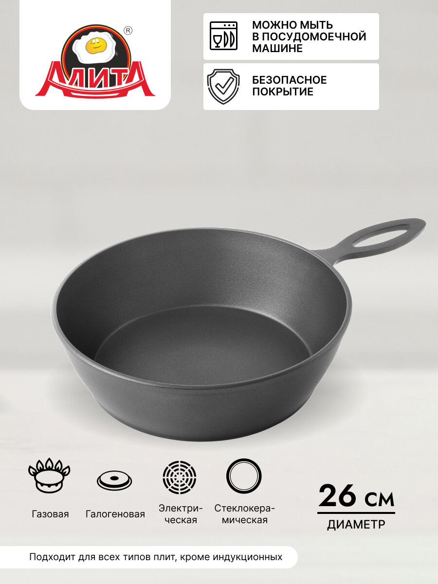 Сковорода сотейник 26 см с толстым дном глубокая литая, Антрацит интересное: