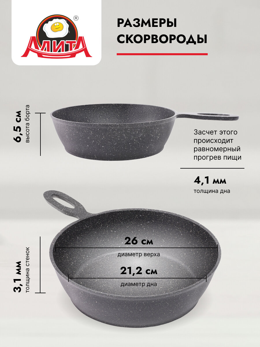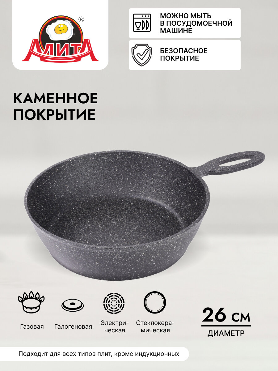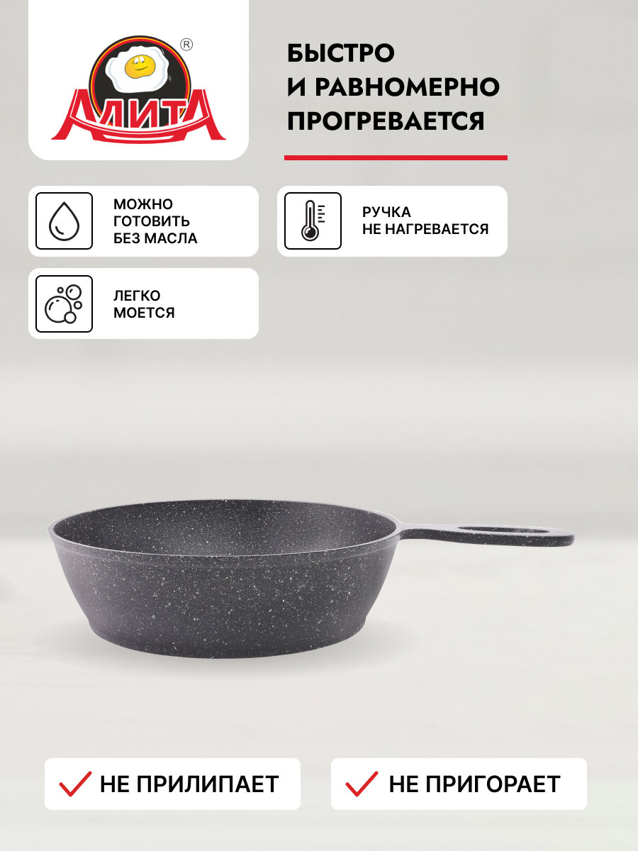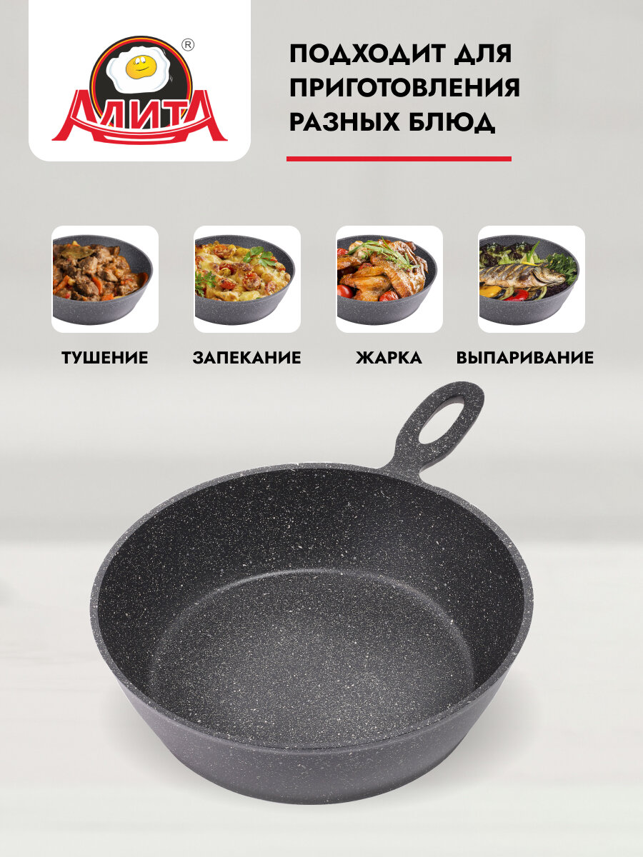 Сковорода сотейник 26 см с толстым дном глубокая литая, Природный камень интересное: