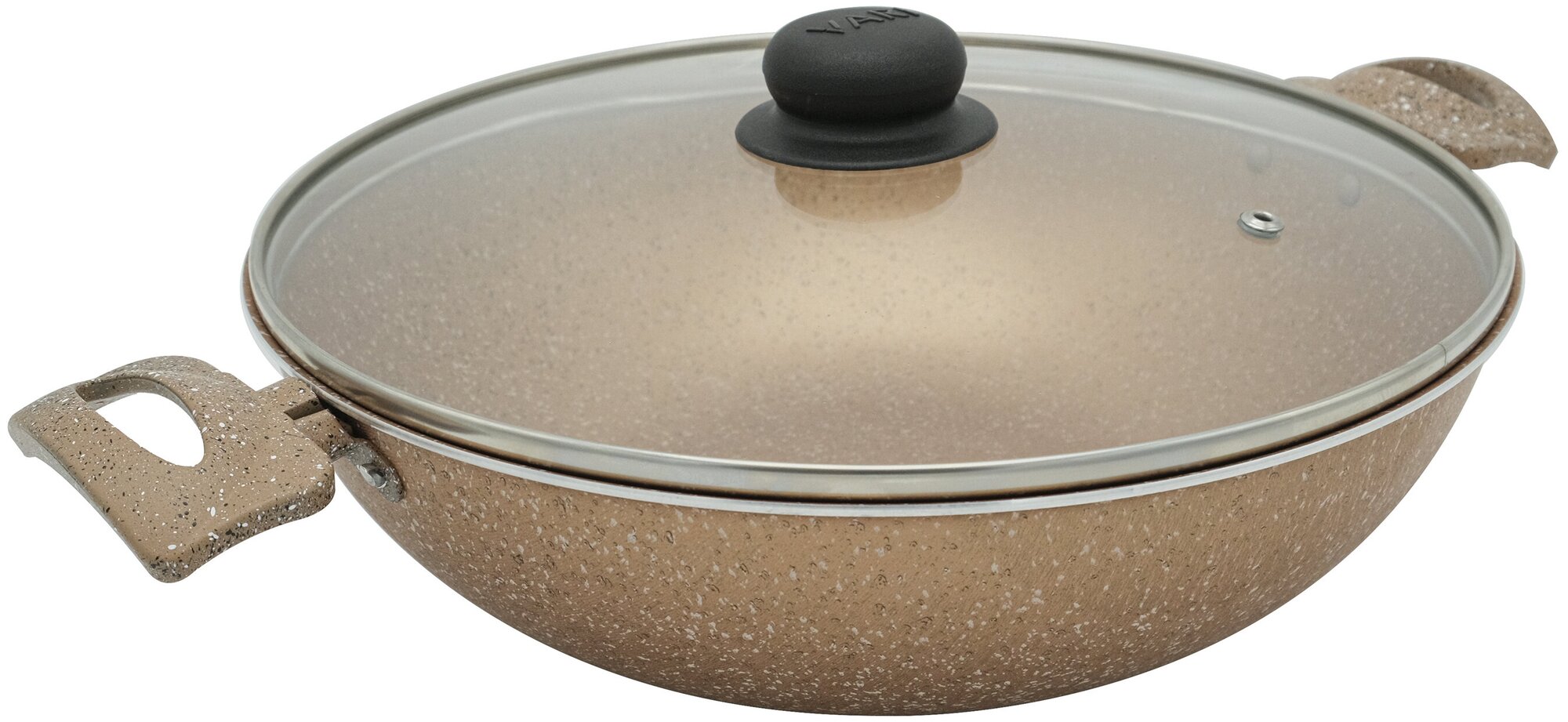 Купить Жаровня штампованная коричневый гранит, с двумя ручками, с крышкой, 28см