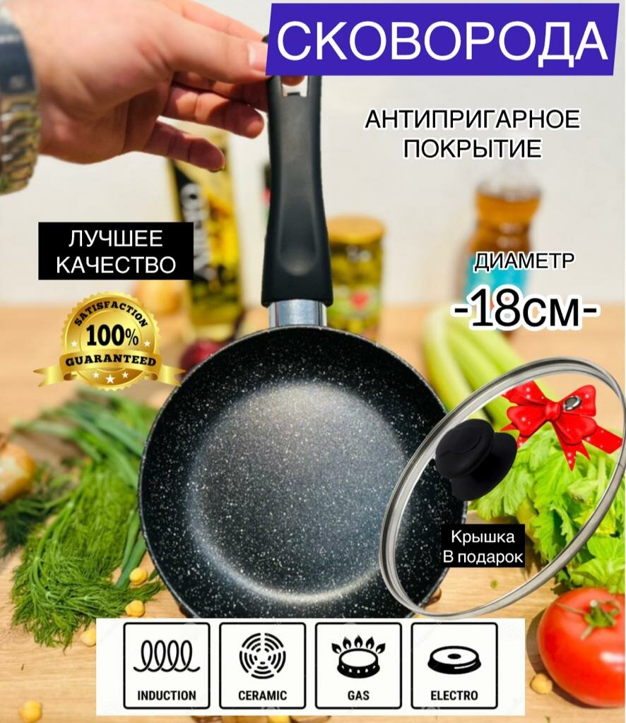 Сковорода для индукционной плиты с мраморным покрытием, диаметр 18 см интересное: