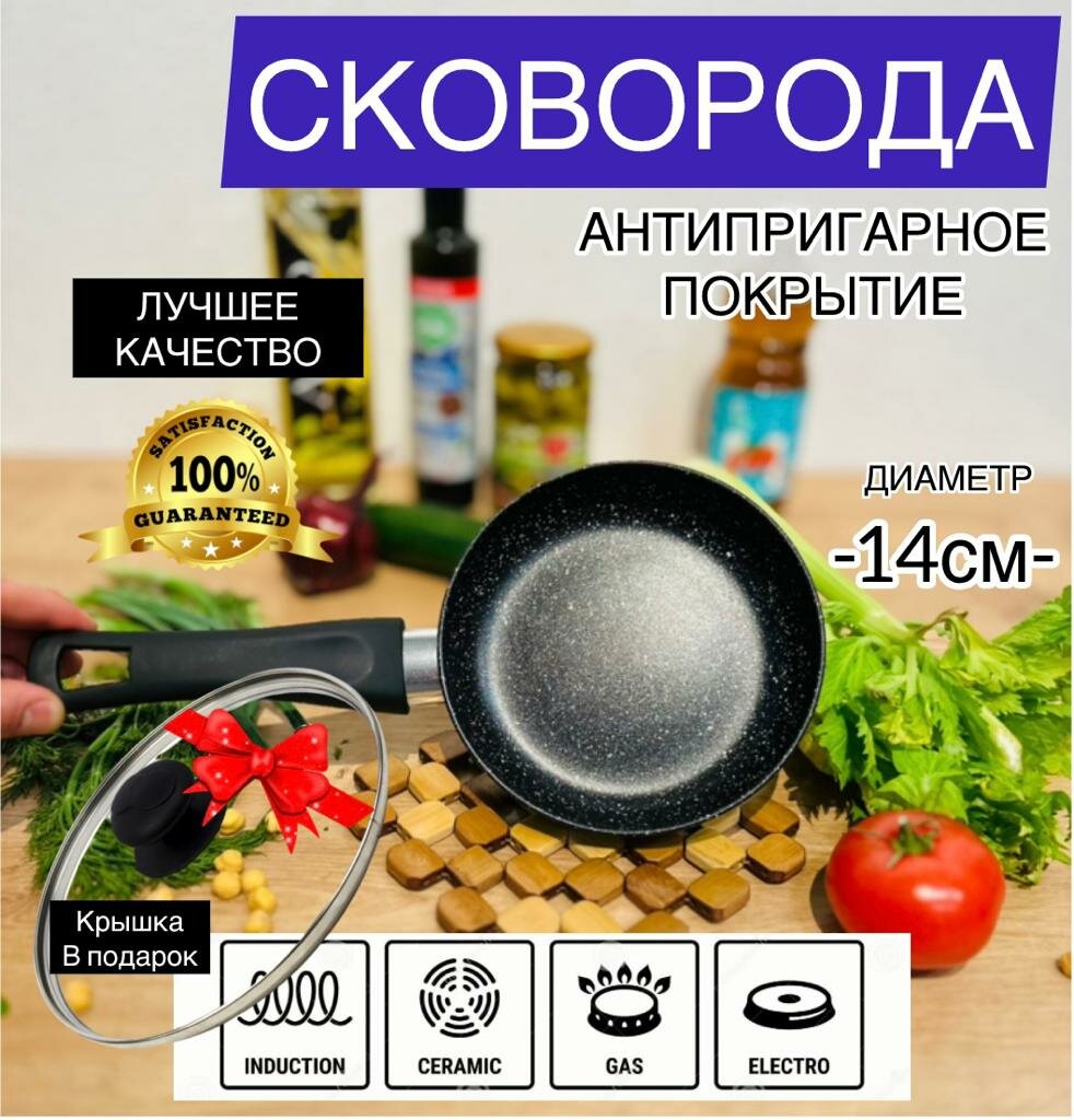 Сковорода для индукционной плиты с мраморным покрытием, диаметр 14 см интересное: