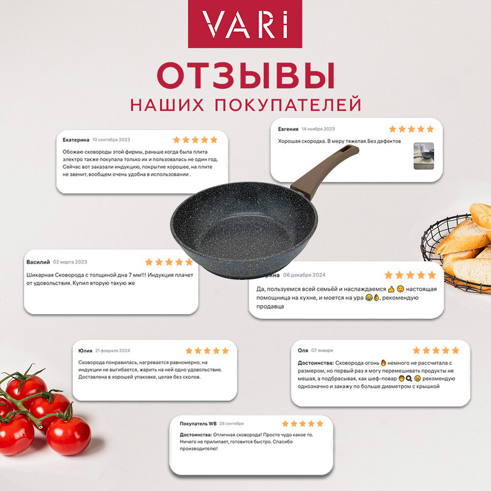 Сковорода литая VARI "Меркурий" с индукцией 26см, с ручкой soft-touch, с антипригарным покрытием, с толстым дном интересное: