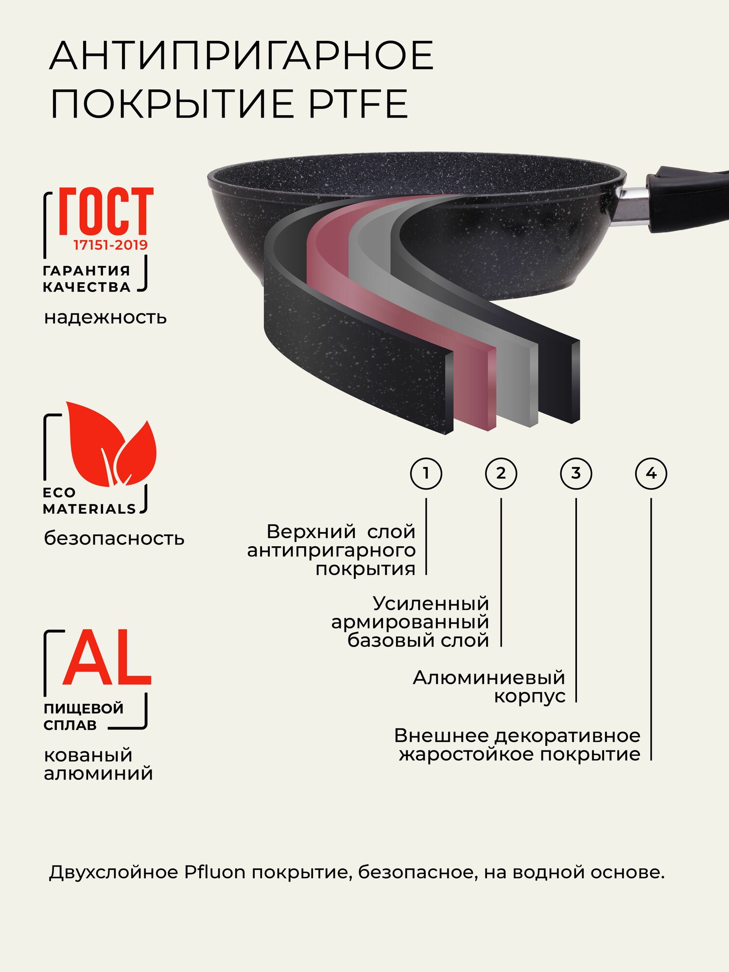 Сковорода 28 см со съемной ручкой и крышкой Vigoroso Nero (индукция, глубокая сковорода) интересное: