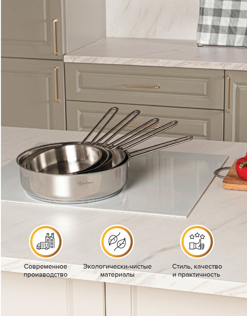 СохранитьСковорода без крышки, нержавеющая сталь, 26 см, Марта, КАТЮША интересное: