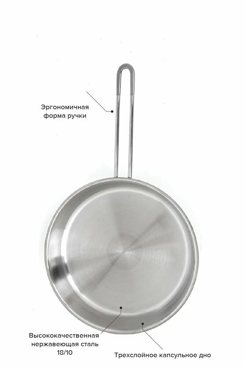 Сковорода без крышки, нержавеющая сталь, 22 см, Марта, КАТЮША