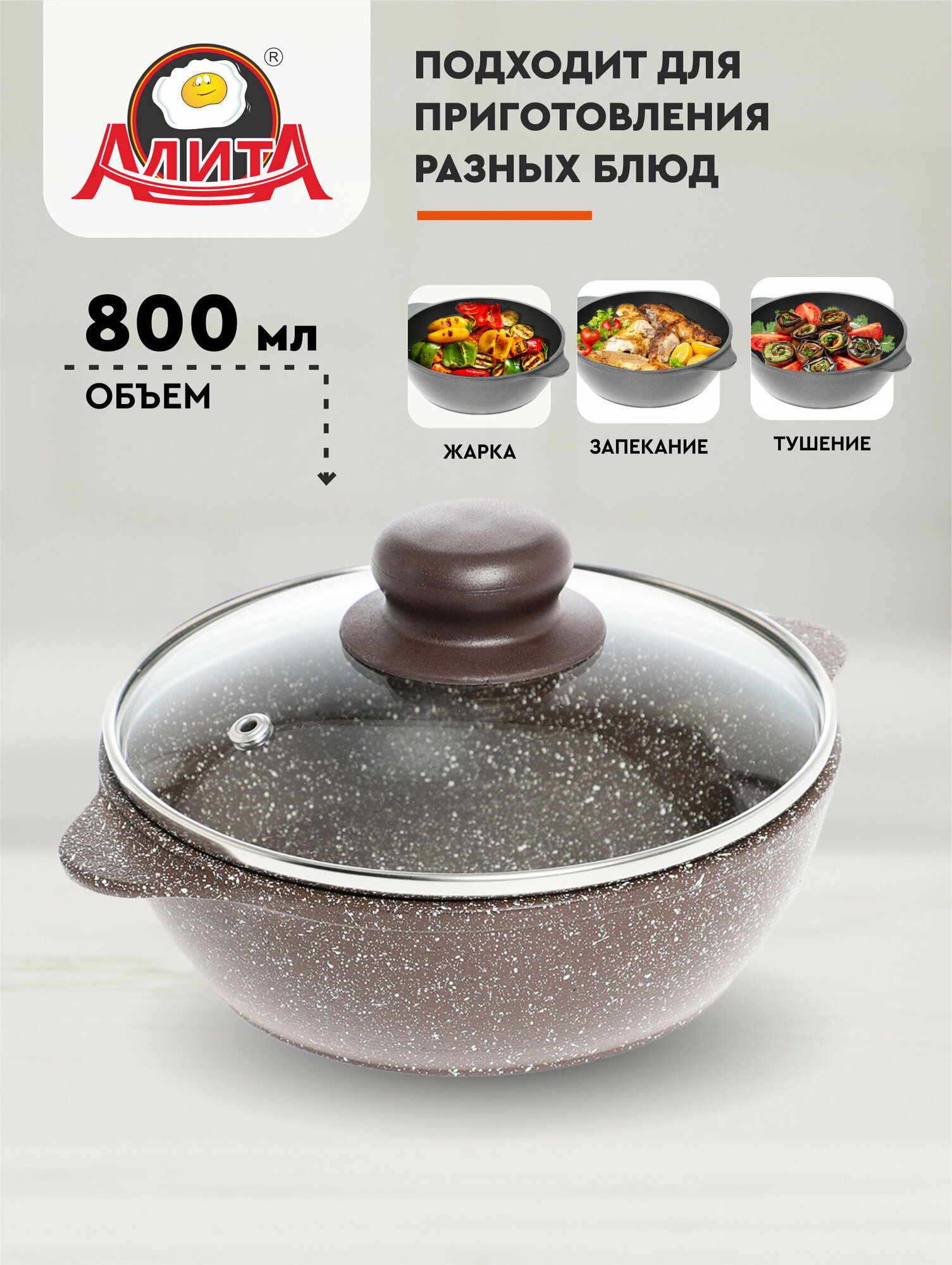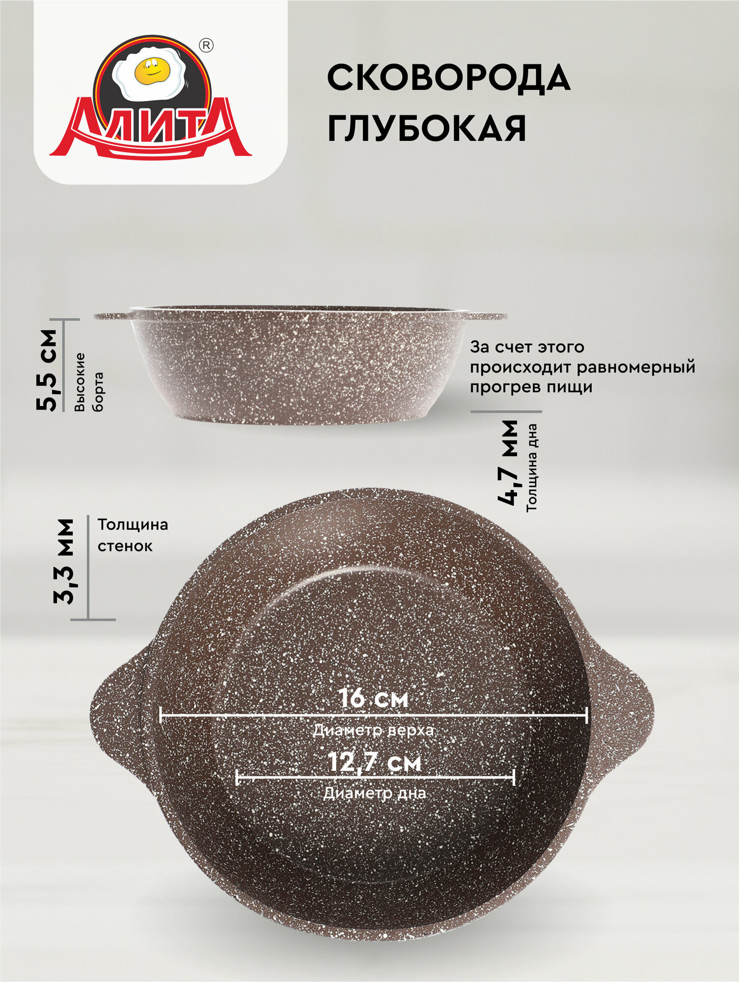 Сковорода с крышкой для яичницы маленькая 16 см антипригарная глубокая литая с покрытием, Браун интересное: