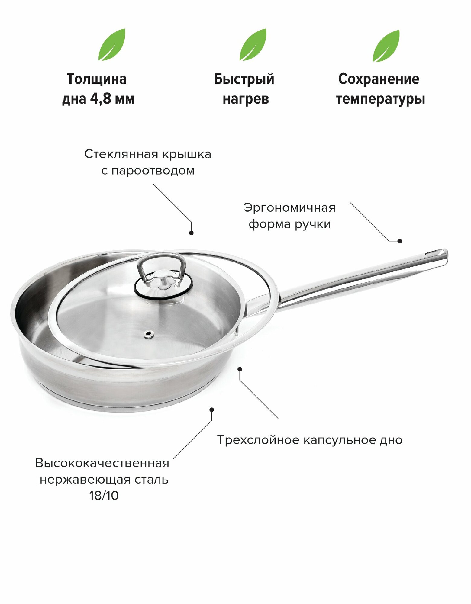 Сковорода с крышкой, нержавеющая сталь, 20 см, София, КАТЮША интересное: