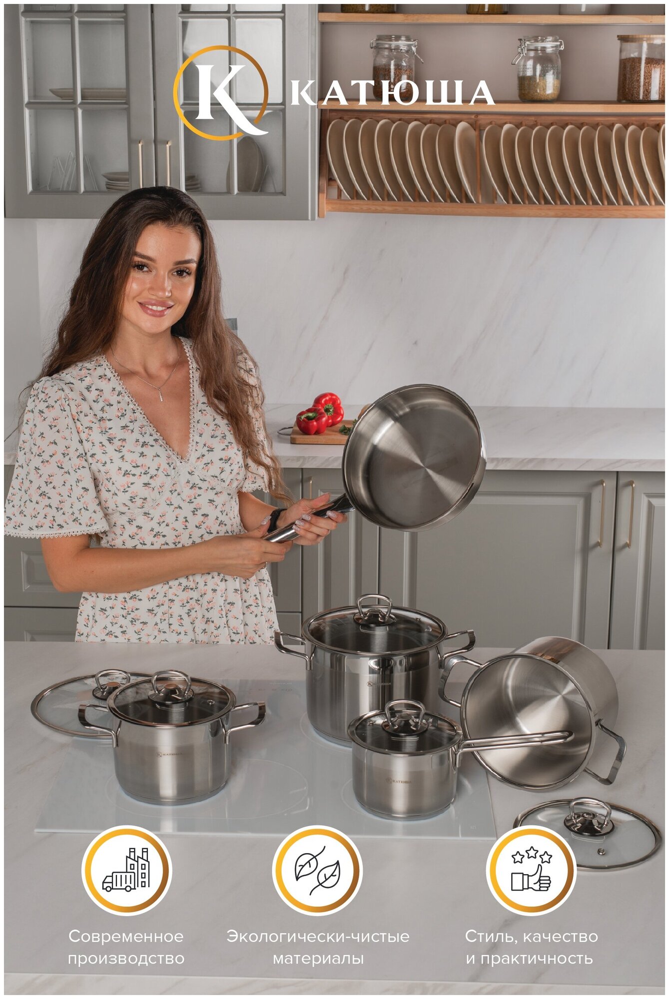 Сковорода с крышкой, нержавеющая сталь, 18 см, София, КАТЮША интересное: