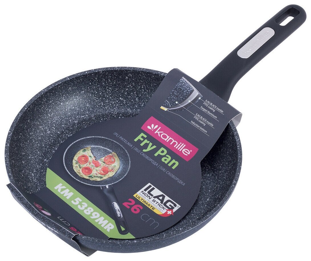 Купить Сковорода 26 см. из алюминия Kamille KM 4117MR с мраморным покрытием (26 см. / черный)