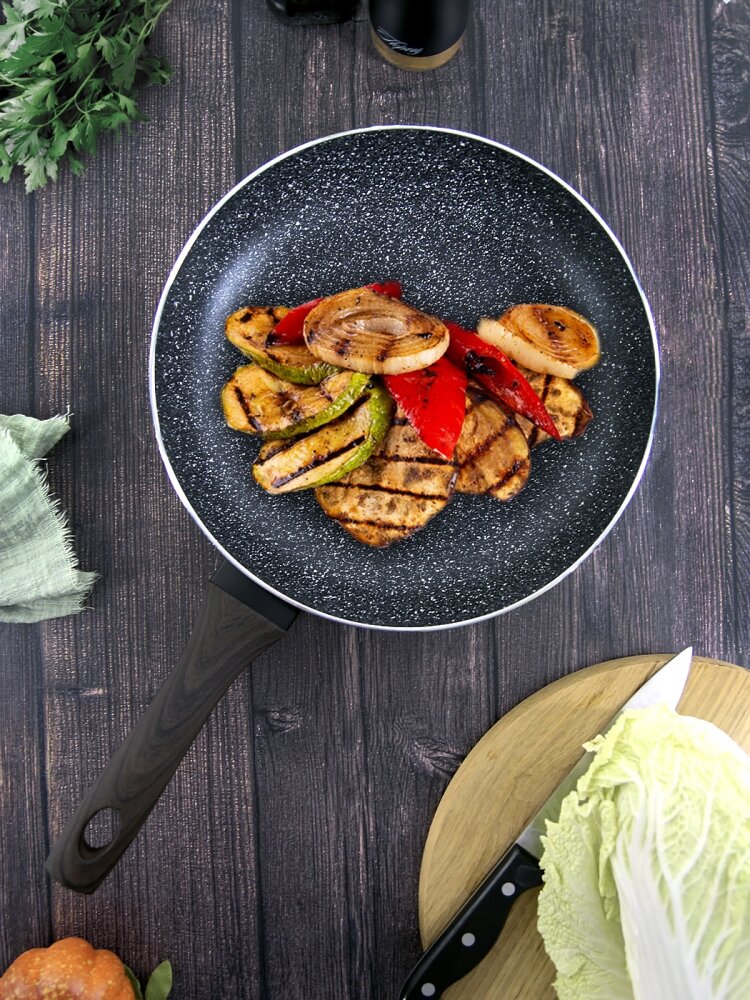 Сковорода 28см. с антипригарным покрытием Grey marble из алюминия Kamille 4114MR интересное:
