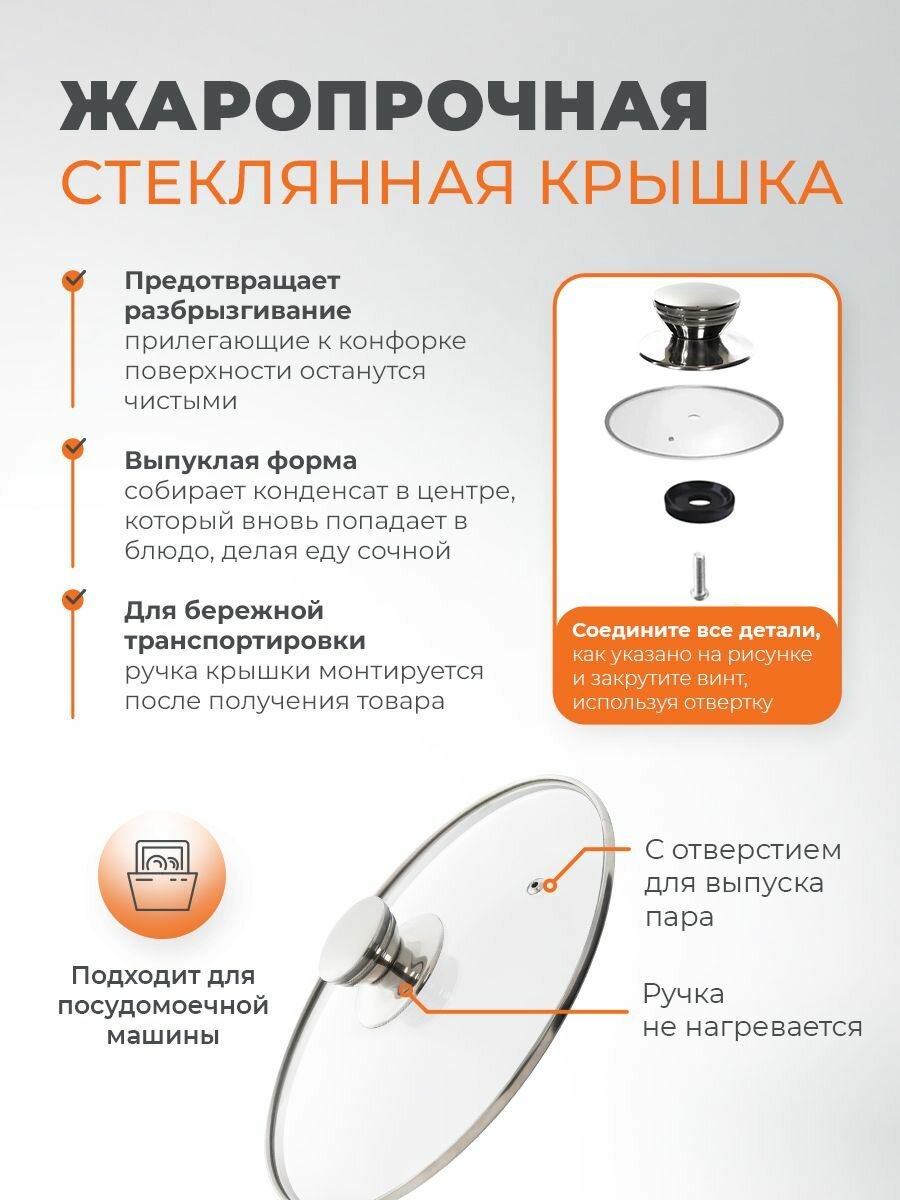 Сковорода c крышкой 24 см со съемной ручкой с антипригарным покрытием Easy Cook