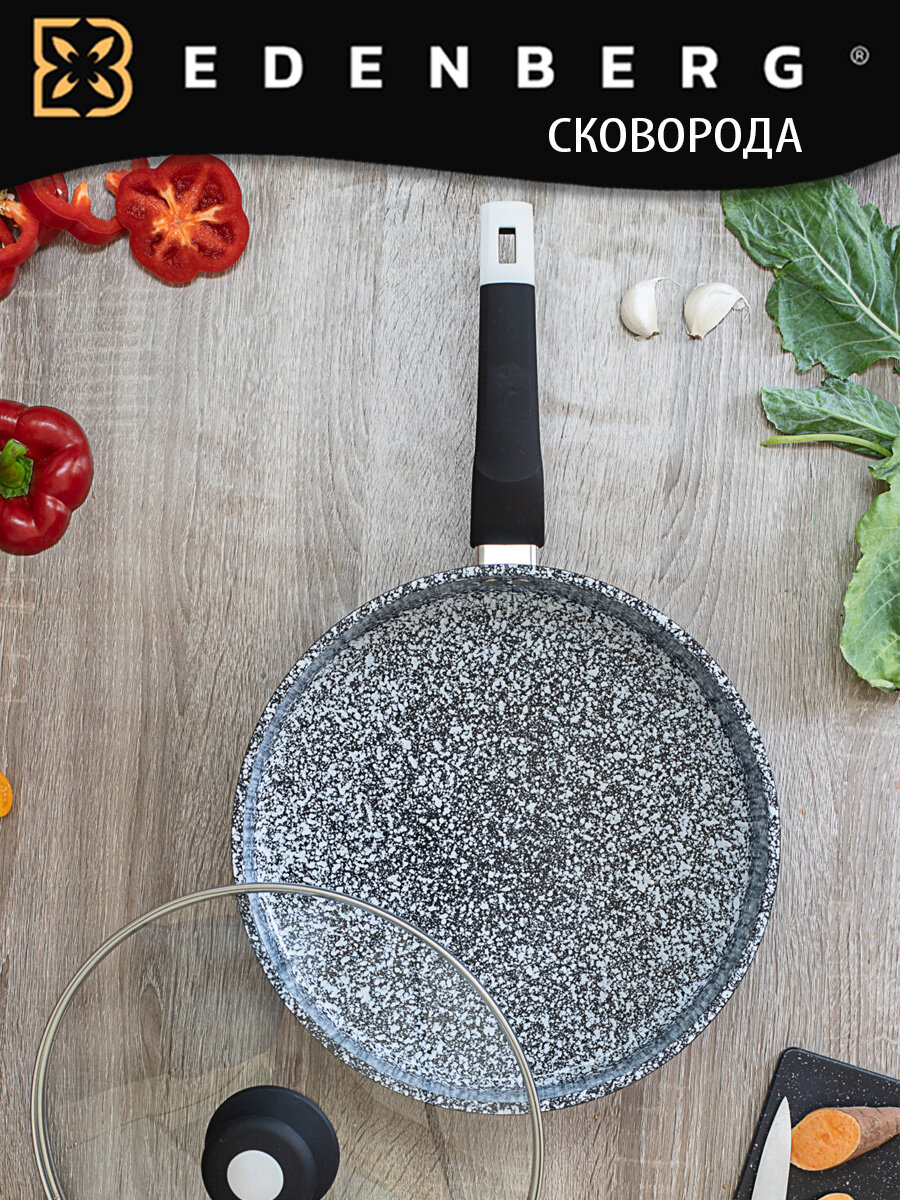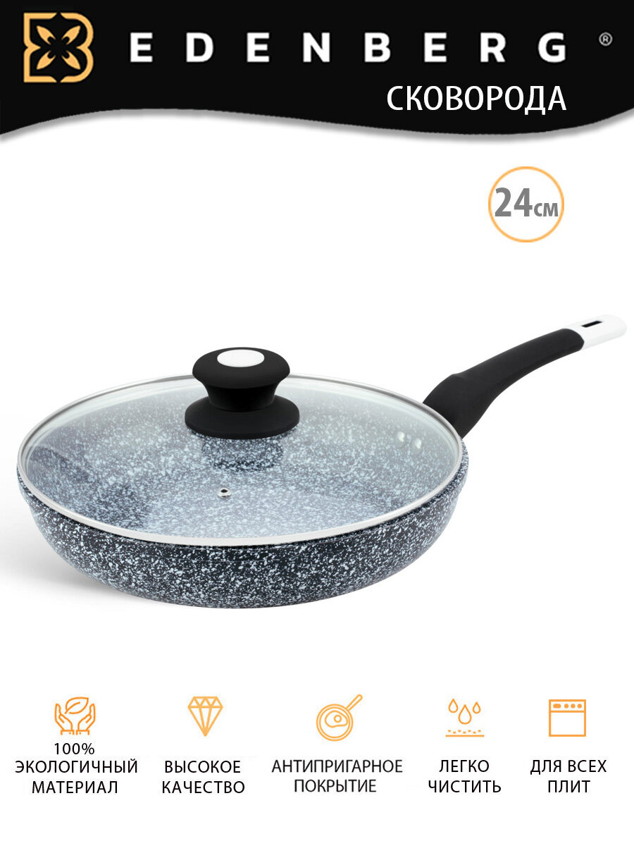 Сковорода с крышкой 24 см и антипригарным гранитным покрытием, литой алюминий Edenberg, индукционная интересное: