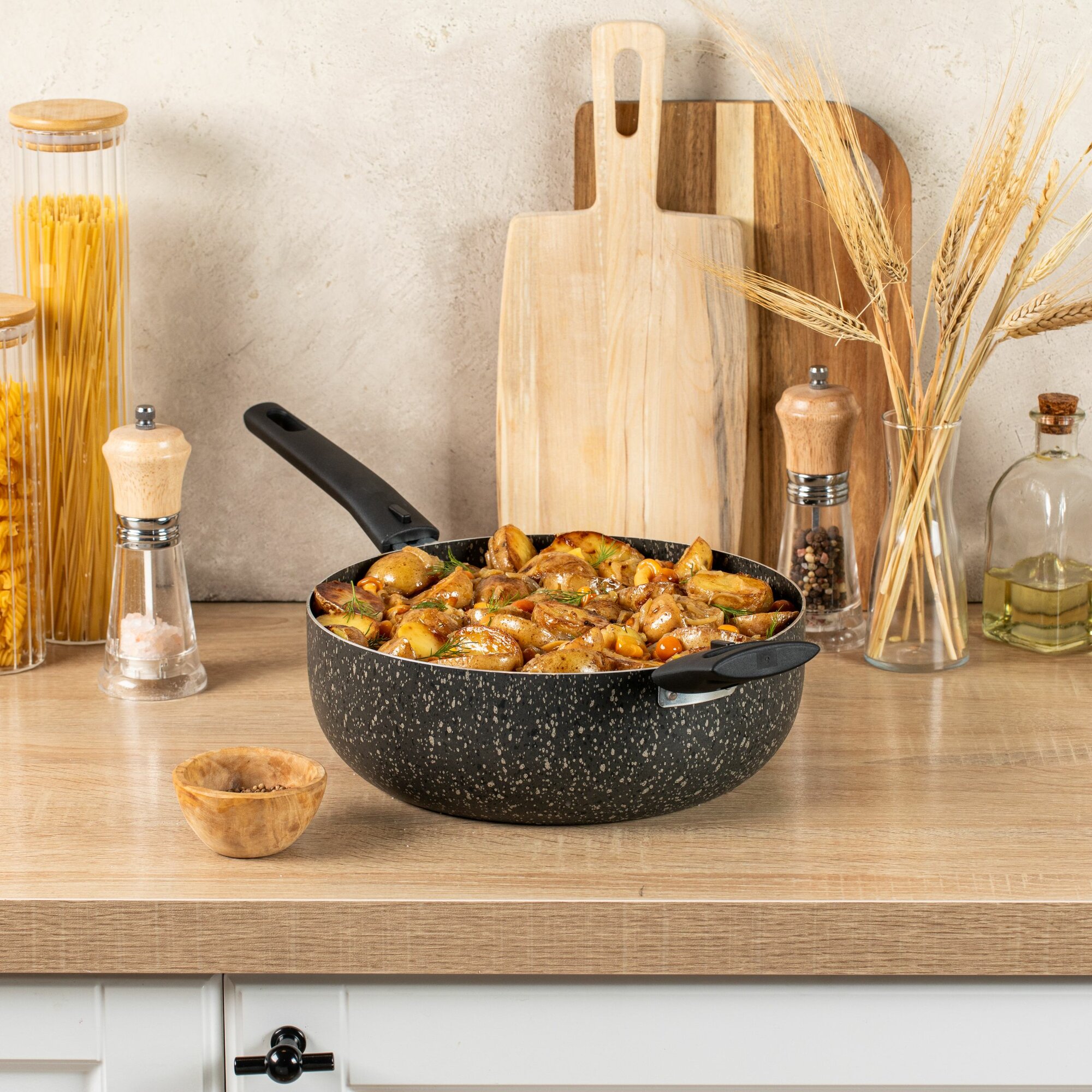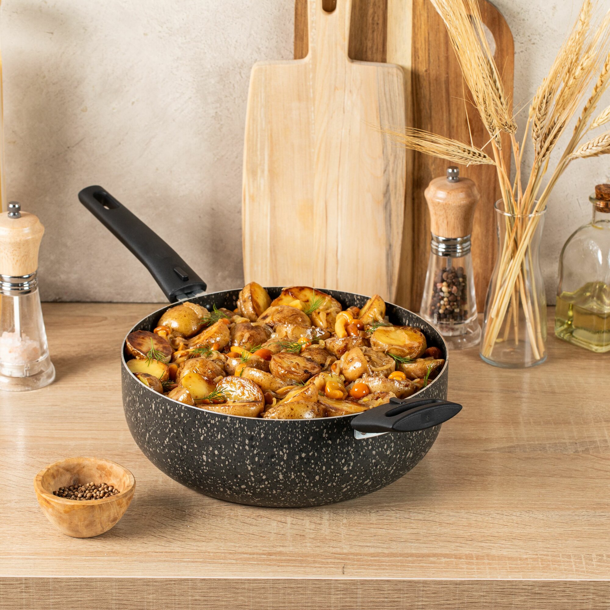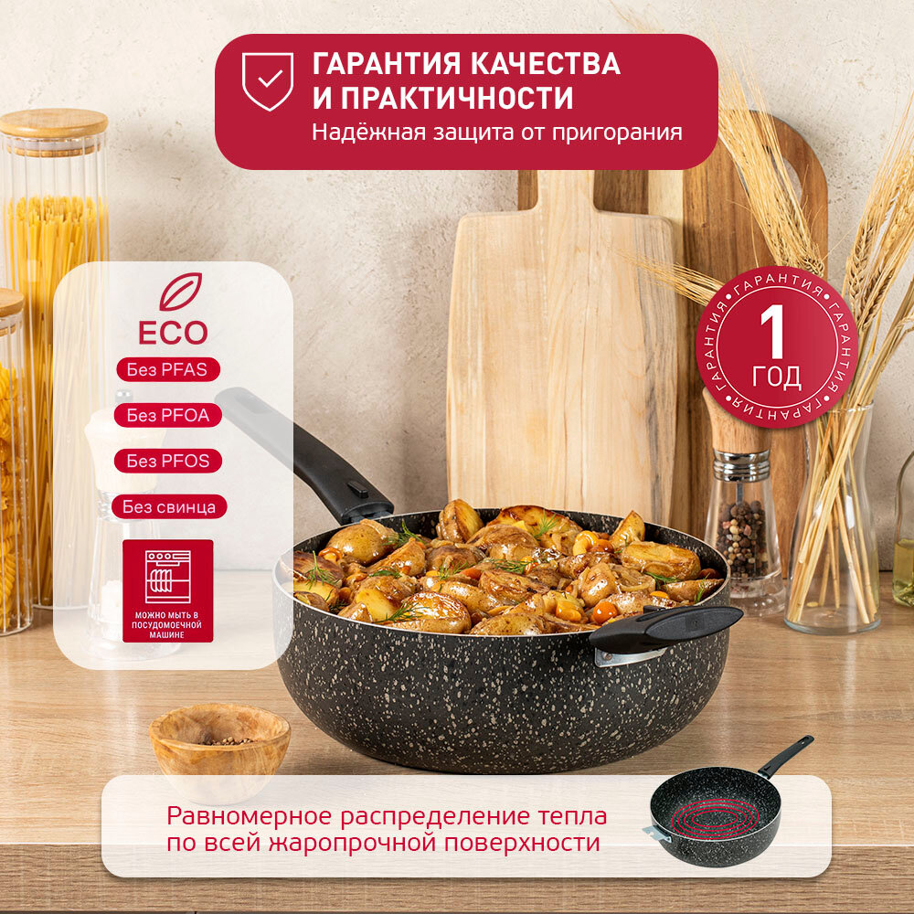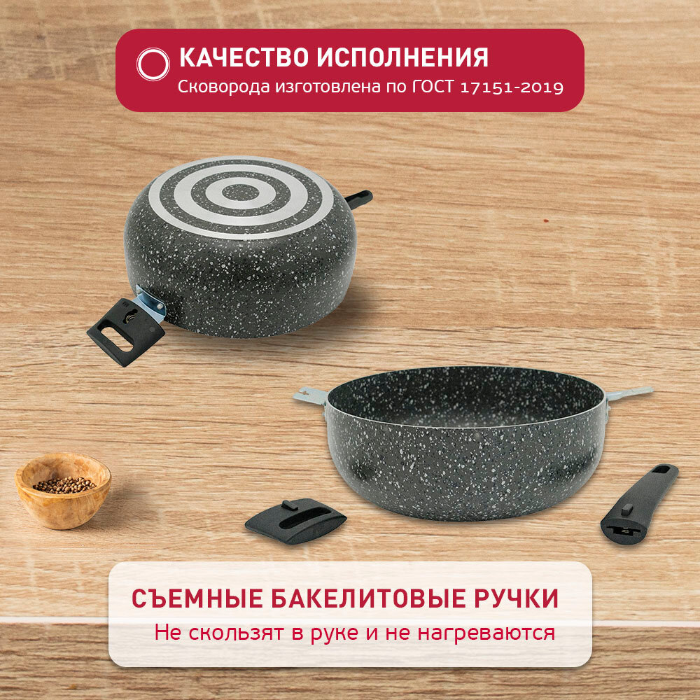 Жаровня 26 см с антипригарным покрытием и съемными ручками 4л, из безопасного пищевого алюминия для приготовления овощных и мясных блюд интересное:
