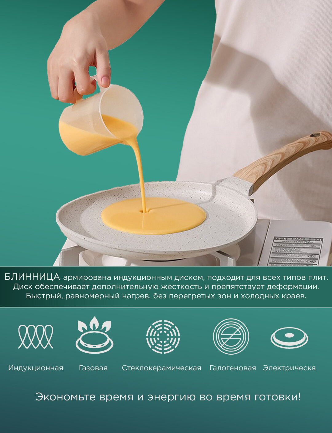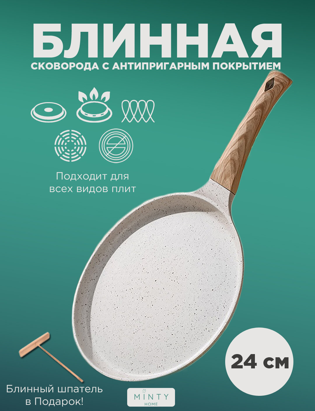 Сковорода для блинов MINTYHOME 24 см. Сковорода блинная антипригарная, мраморное покрытие, блинница, сковородка для индукционной плиты. Светлая интересное: