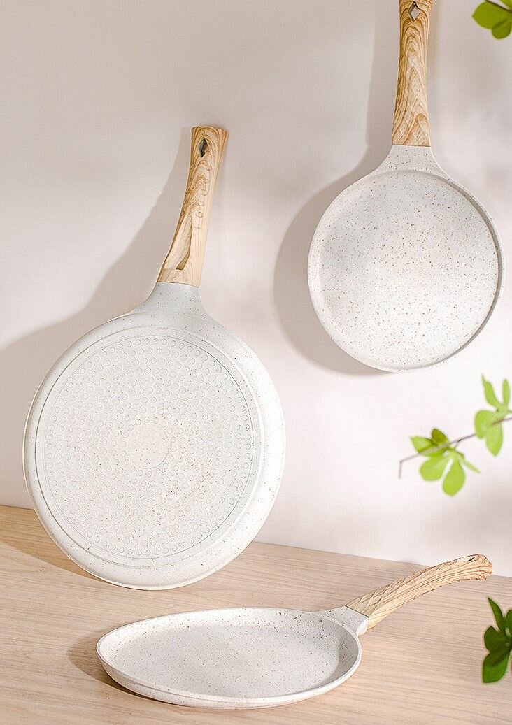 Купить Сковорода для блинов MINTYHOME 24 см. Сковорода блинная антипригарная, мраморное покрытие, блинница, сковородка для индукционной плиты. Светлая