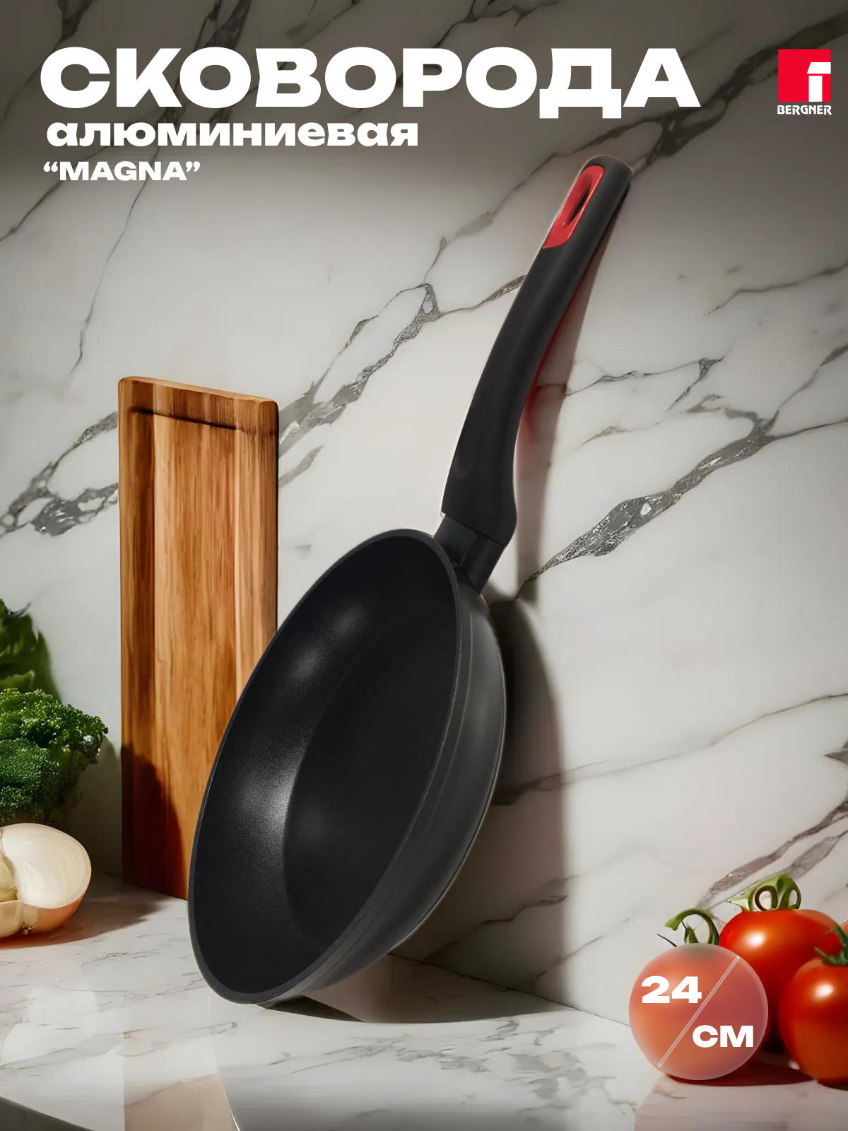 Сковорода алюминиевая 24 см, 4,8 см, Magna, цвет черный, BERGNER интересное: