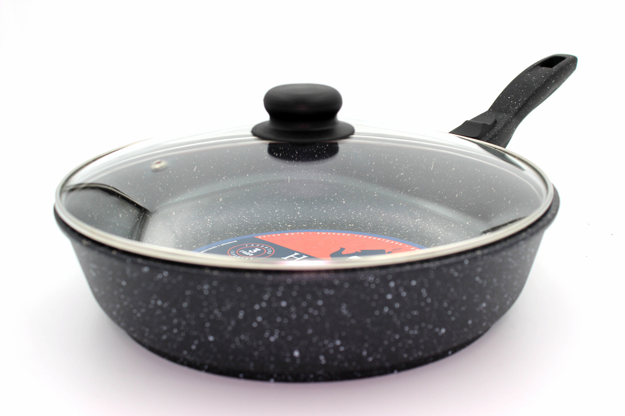 Купить Сковорода 28 см с антипригарным гранитным покрытием с крышкой, со съемной ручкой
