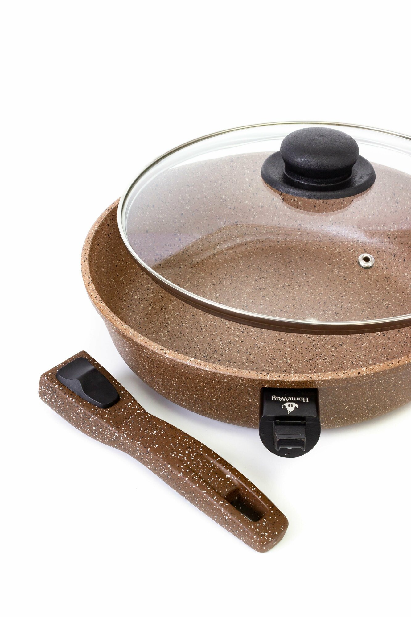 Сковорода 24 см с антипригарным гранитным покрытием мокко с крышкой, со съемной ручкой