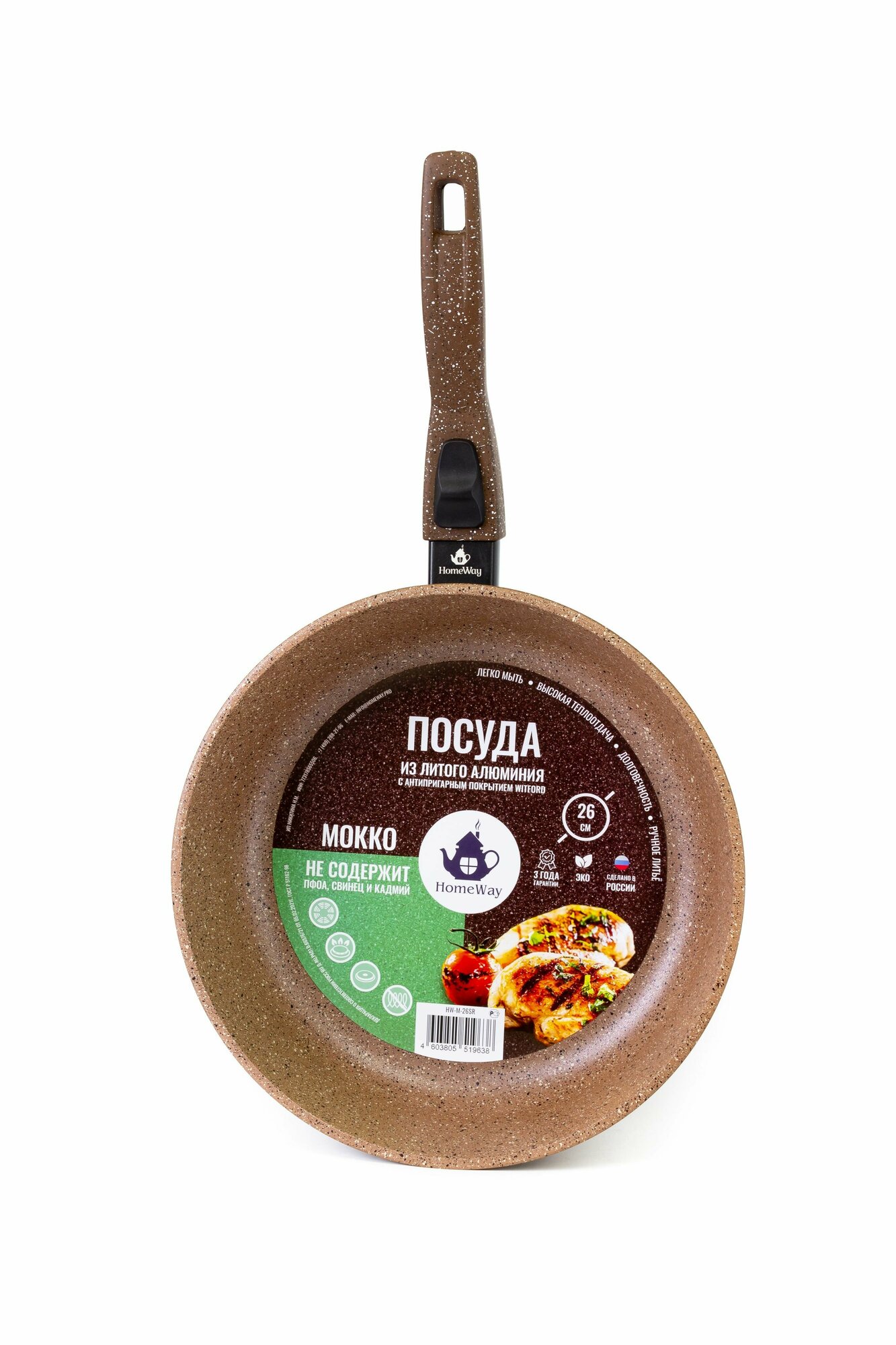 СохранитьСковорода 26 см с антипригарным гранитным покрытием мокко с крышкой, со съемной ручкой интересное: