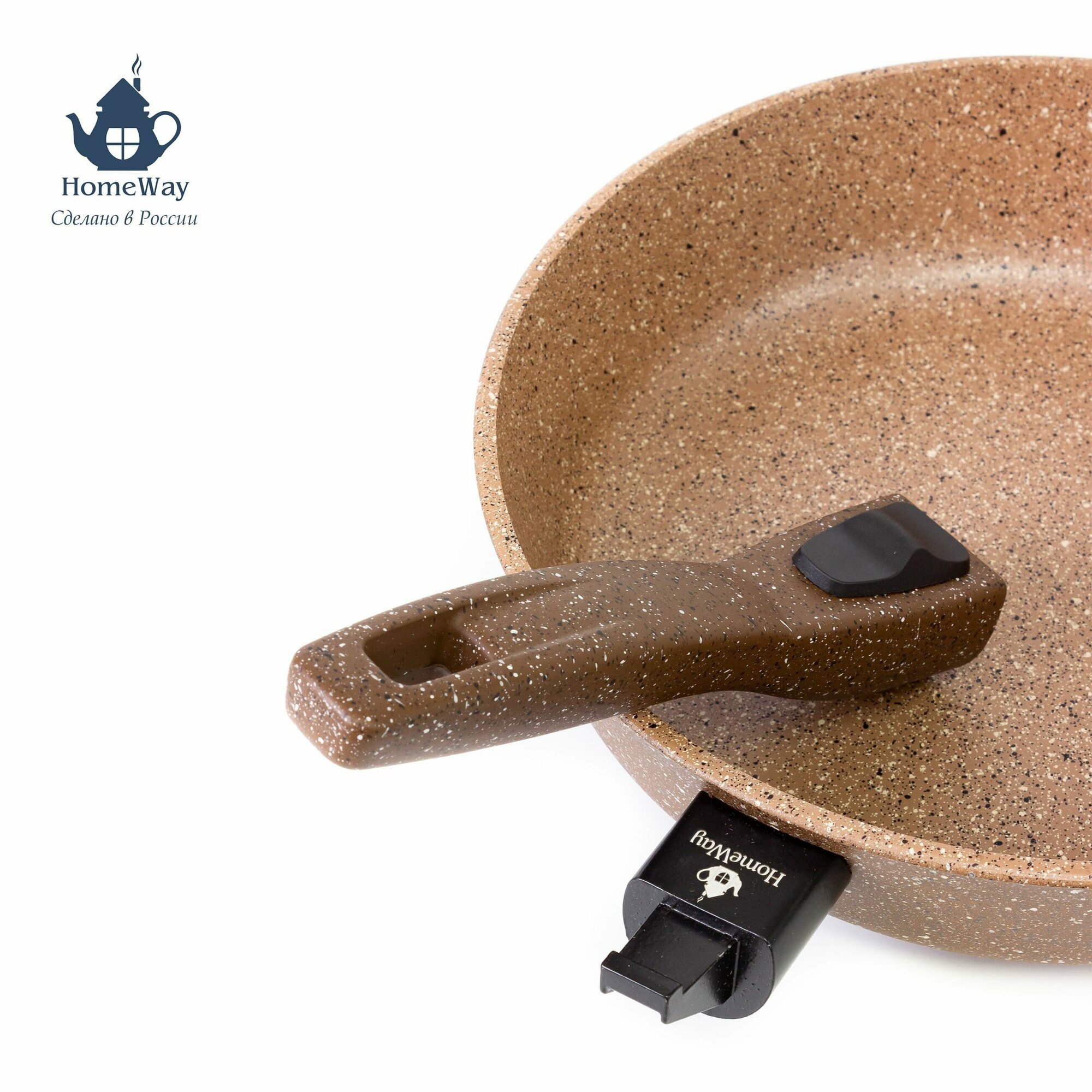 СохранитьСковорода 24 см с антипригарным гранитным покрытием мокко с крышкой, со съемной ручкой интересное: